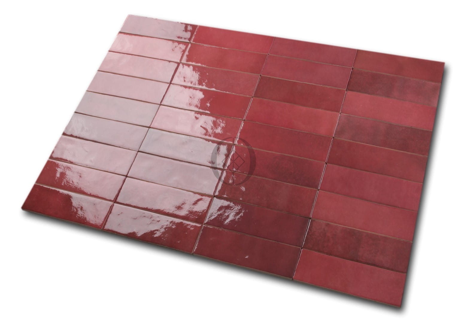 Artisan Burgundy 6,5x20 Pol von Domelia – elegante burgunderfarbene Metro-Fliese, ideal für hochwertige Wandgestaltungen in Küche und Bad.