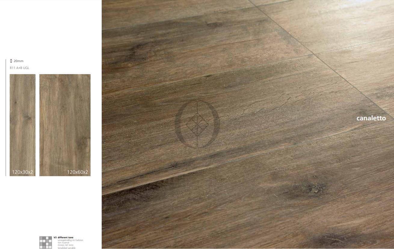 Canaletto-Steinzeugfliese in Holzoptik, 120 x 30 x 0,8 cm