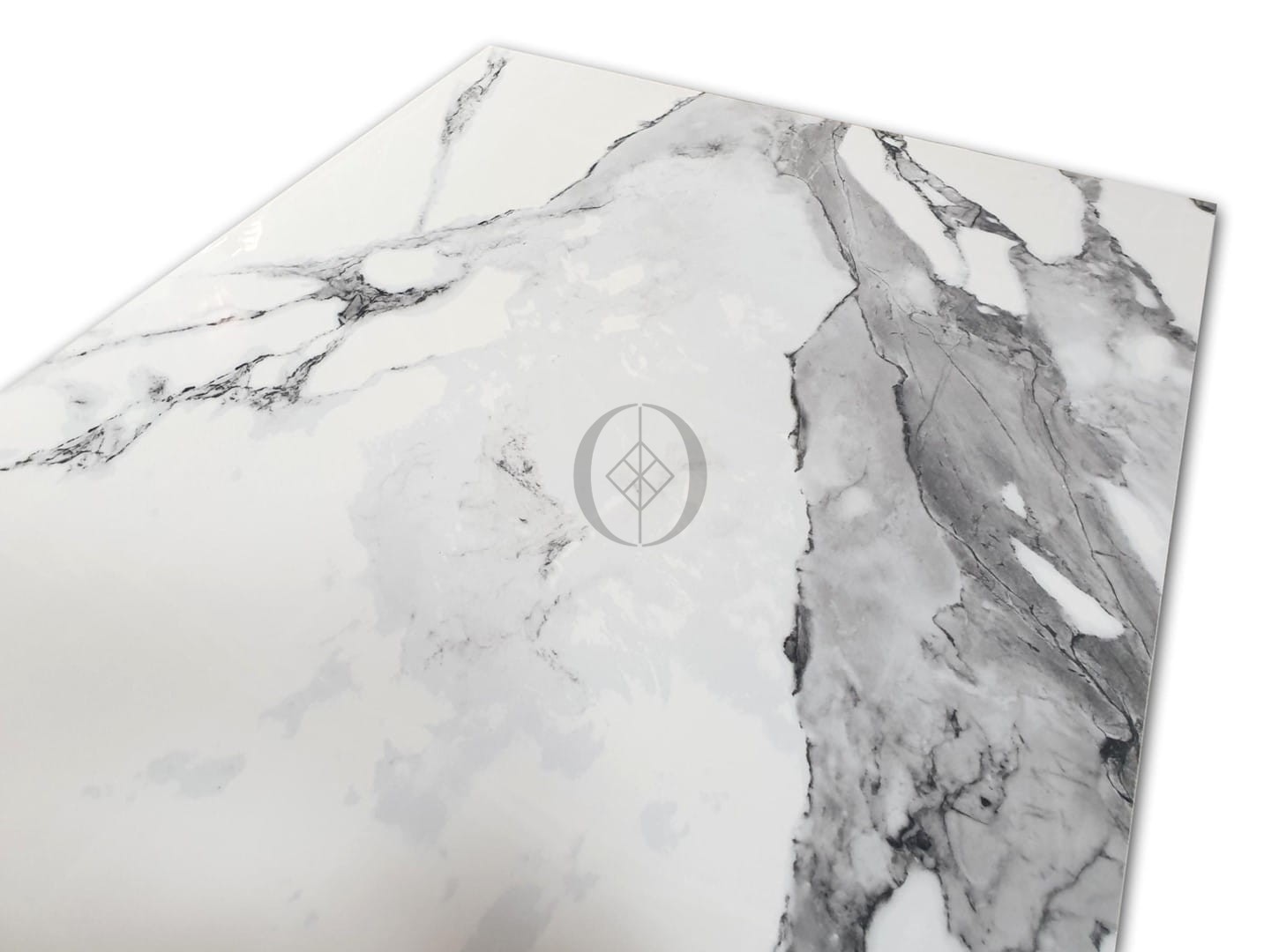 Domelia Crash Marble Bianco 60x120: elegante Keramikfliese im Großformat mit dezenter Marmoroptik, hellem Grundton und feiner Aderung – ideal für zeitlose, hochwertige Innenräume.