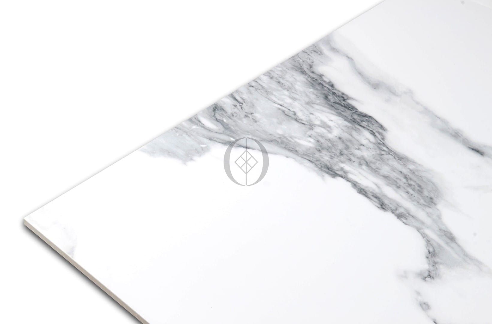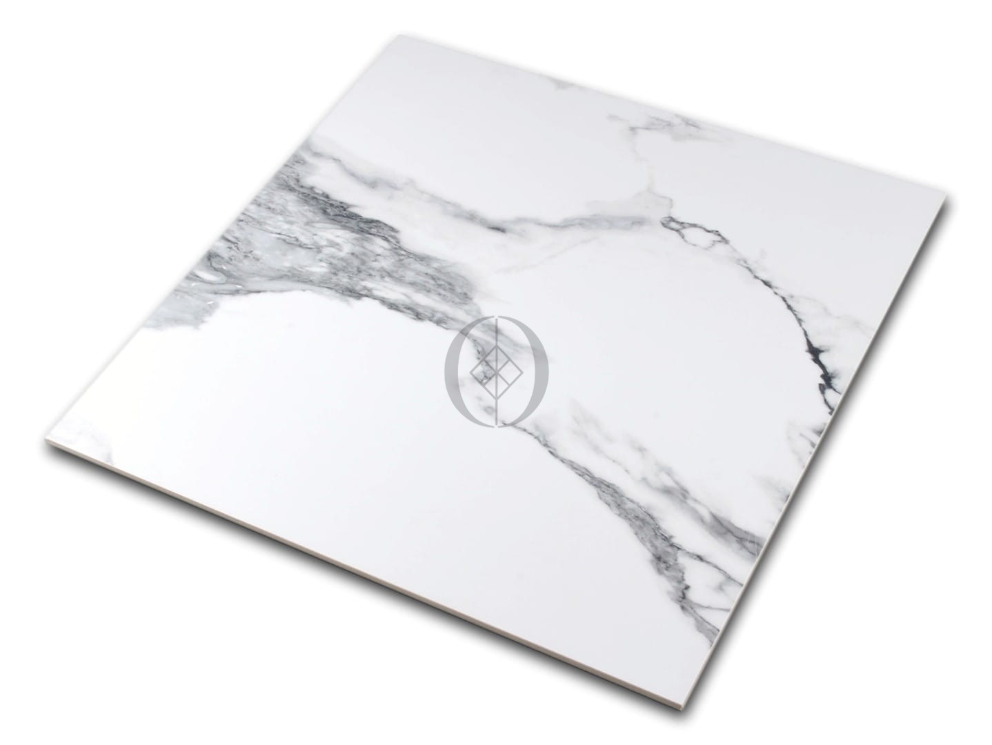 Polierte, marmorähnliche Fliese im Format 60x60 mit dezenter Bianco-Maserung – ideal für elegante Böden und Wände in Wohn- und Objektbereichen.