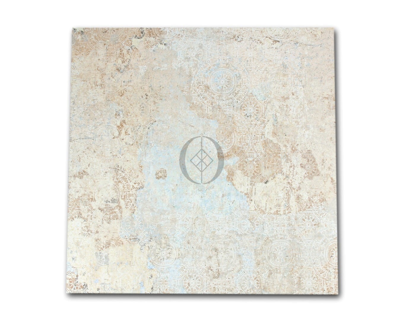 Carpet Sand 59,2x59,2 Natural Feinsteinzeugfliese von Aparici mit Gobelin‑inspiriertem Dekor, mattem Naturfinish, Rutschhemmung R9 und 26 zufällig verpackten Motiven – langlebig, frostbeständig und pflegeleicht.