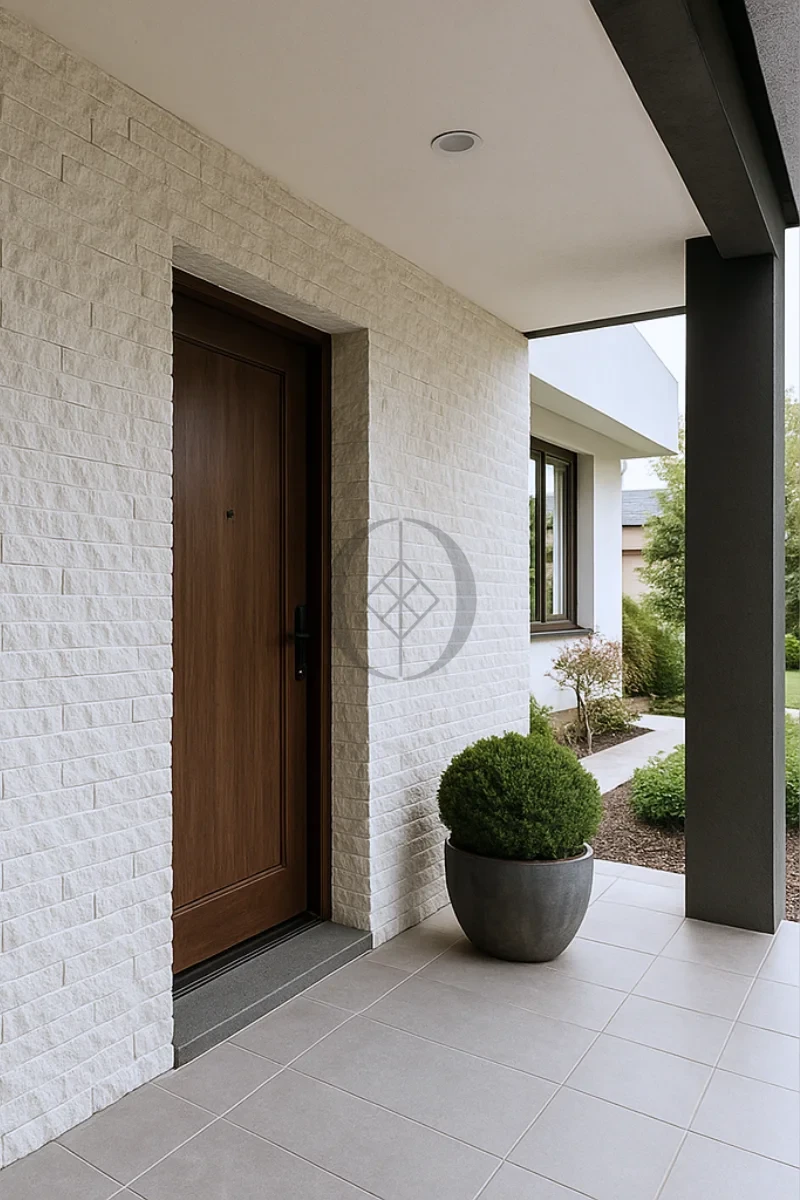 Pure White Brick 7x30 – dekorative Marmorfliese in reinem Weiß mit rustikaler, gespalten wirkender Oberfläche, ideal für stilvolle Innenwandgestaltungen.