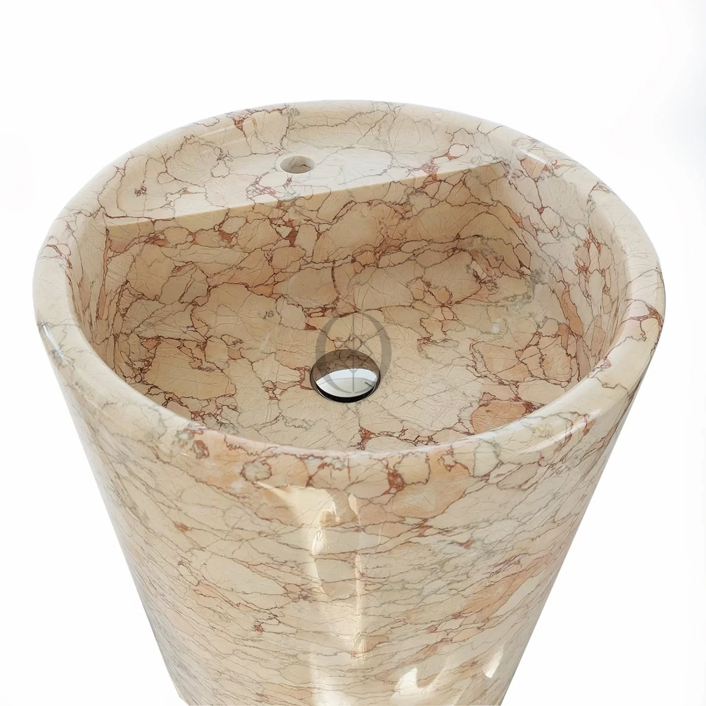 Freistehendes Waschbecken aus Sakura-Rosa-Marmor, poliert, 50 x 50 x 85 cm