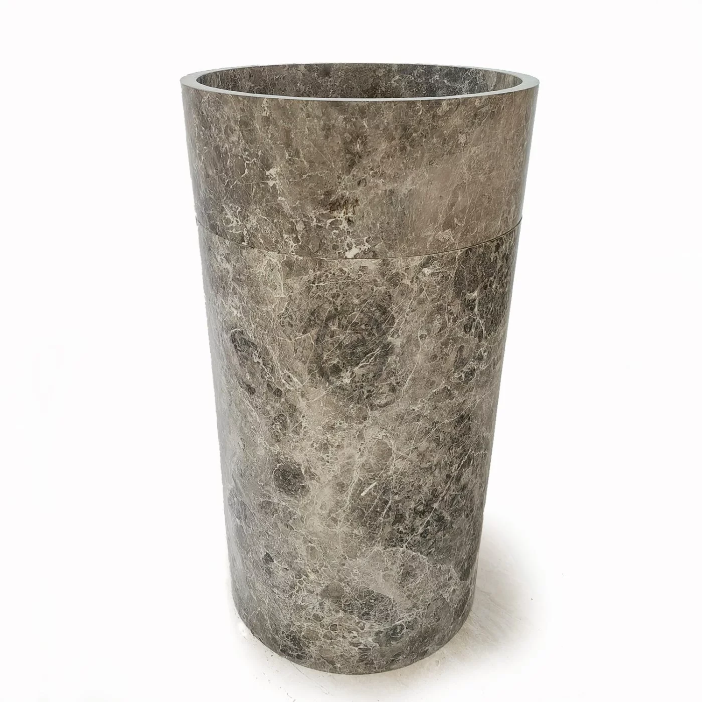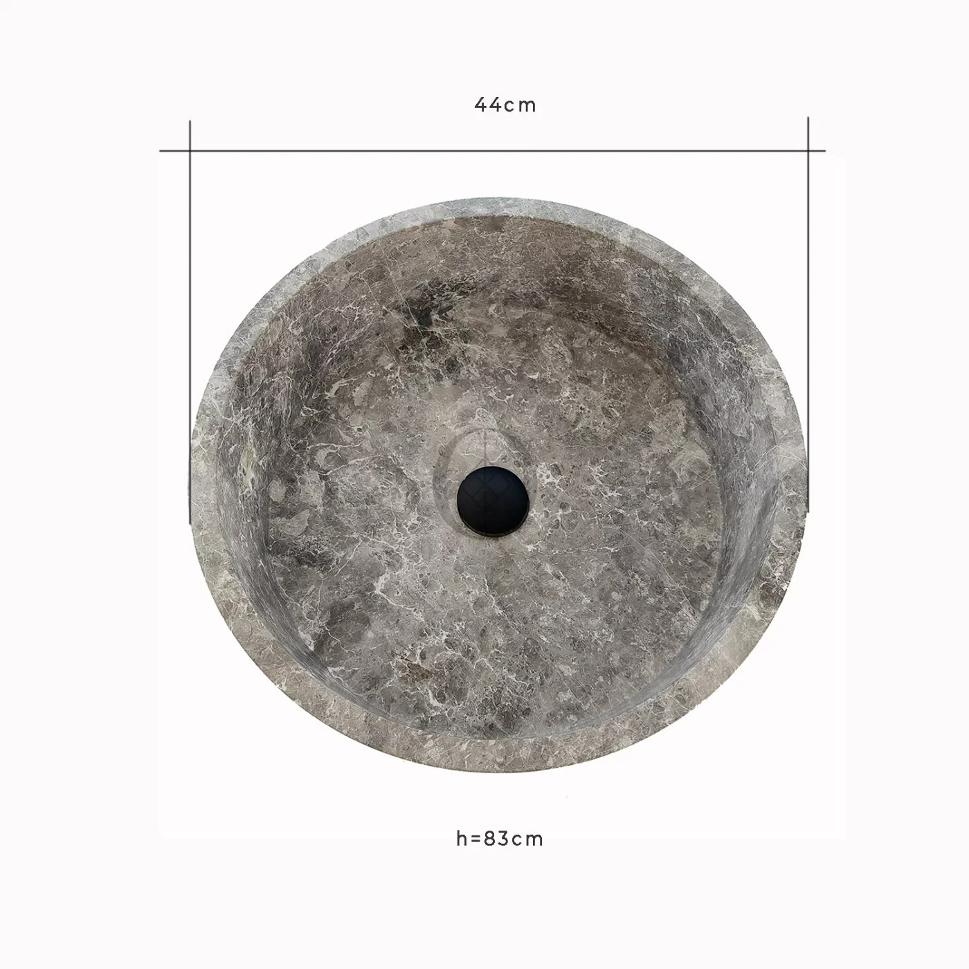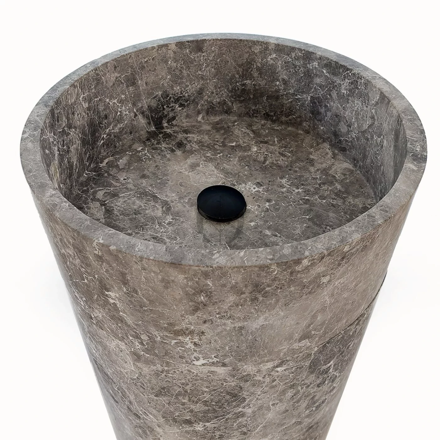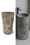 Freistehendes Waschbecken aus satiniertem Marmor in Tundra Grey, 44 x 44 x 83 cm
