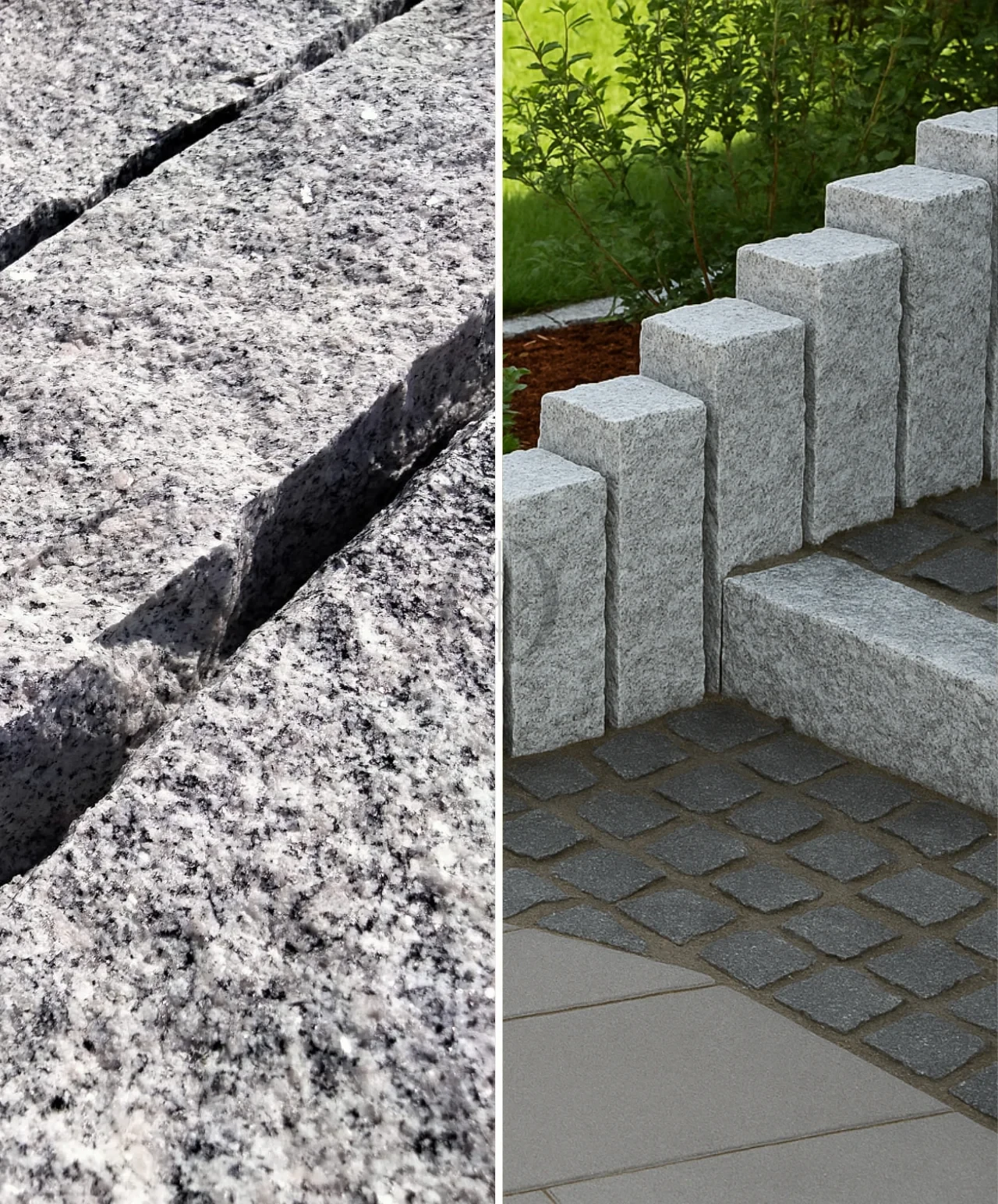 Granit-Palisade G603 – langlebige und ästhetische Einfassung zur Abgrenzung von Belägen, Beeten und Wegen im Garten.