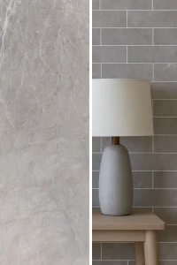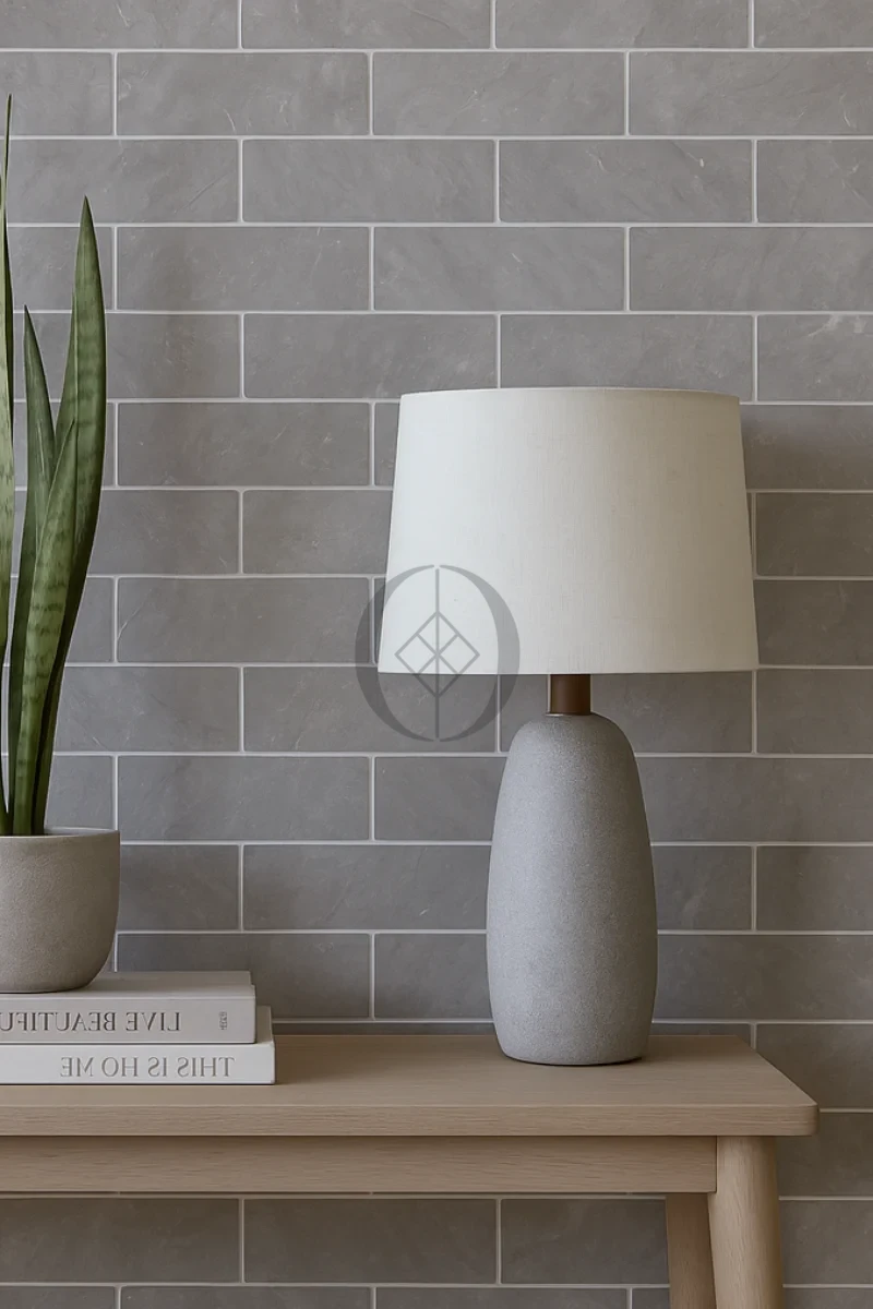 Marmor Erth Grey Ziegelchen gebürstet 30,5×7,6×1 cm – ein Naturstein in Grautönen mit feiner, strukturierter Oberfläche, ideal für moderne Innenräume im Industrial-, Japandi- und Modern-Classic-Stil.