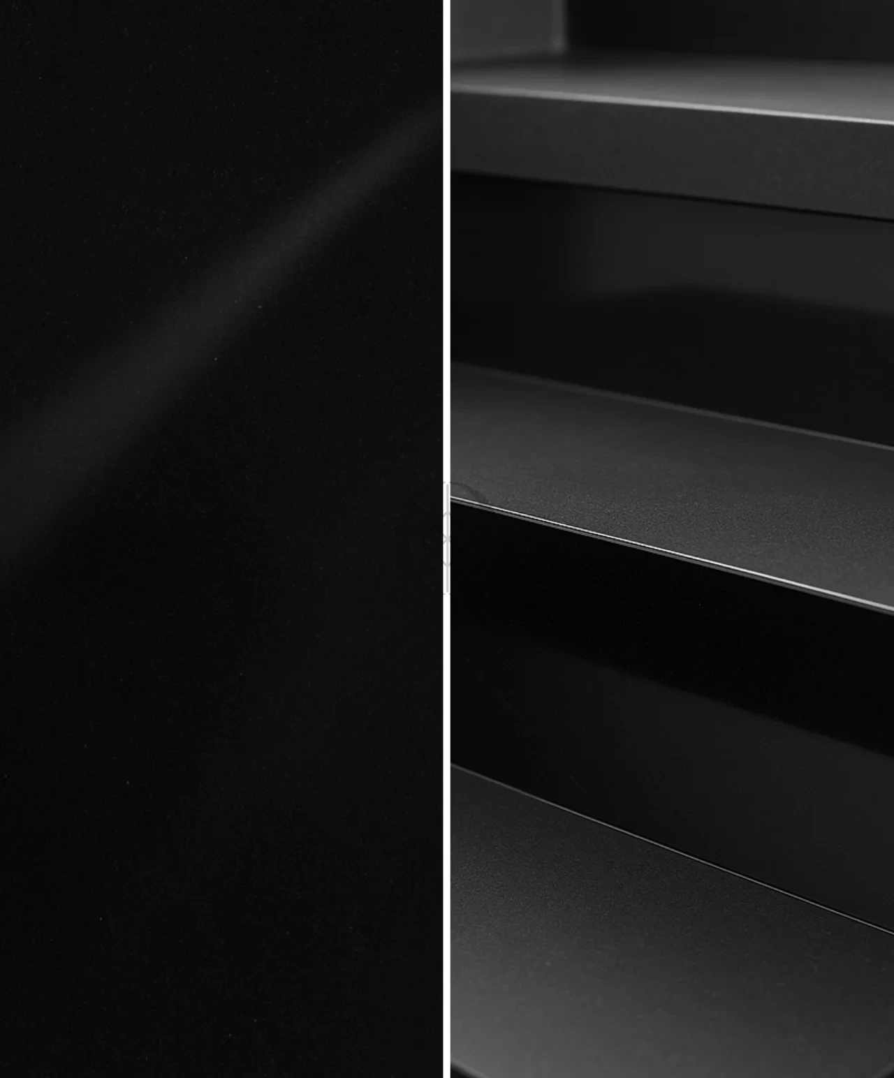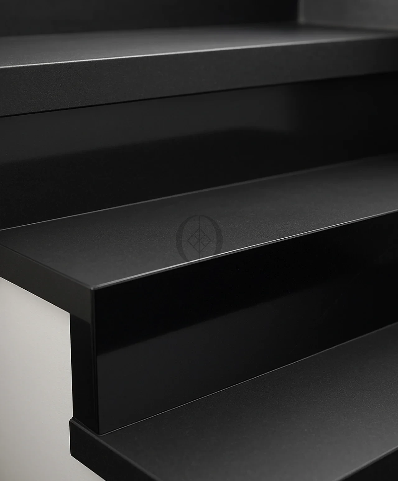 Polierte Basalt-Setzstufe G690 Bazalt Black – elegantes Treppenfinish in tiefem Schwarz.