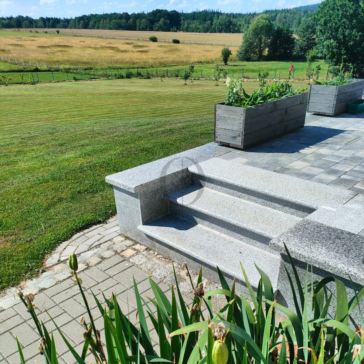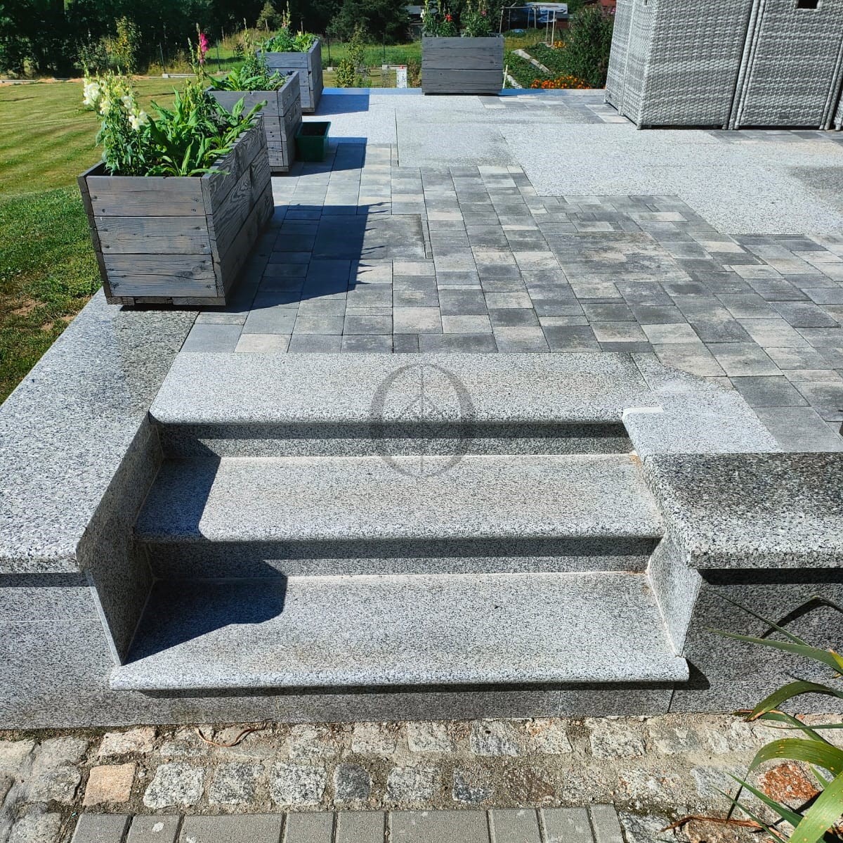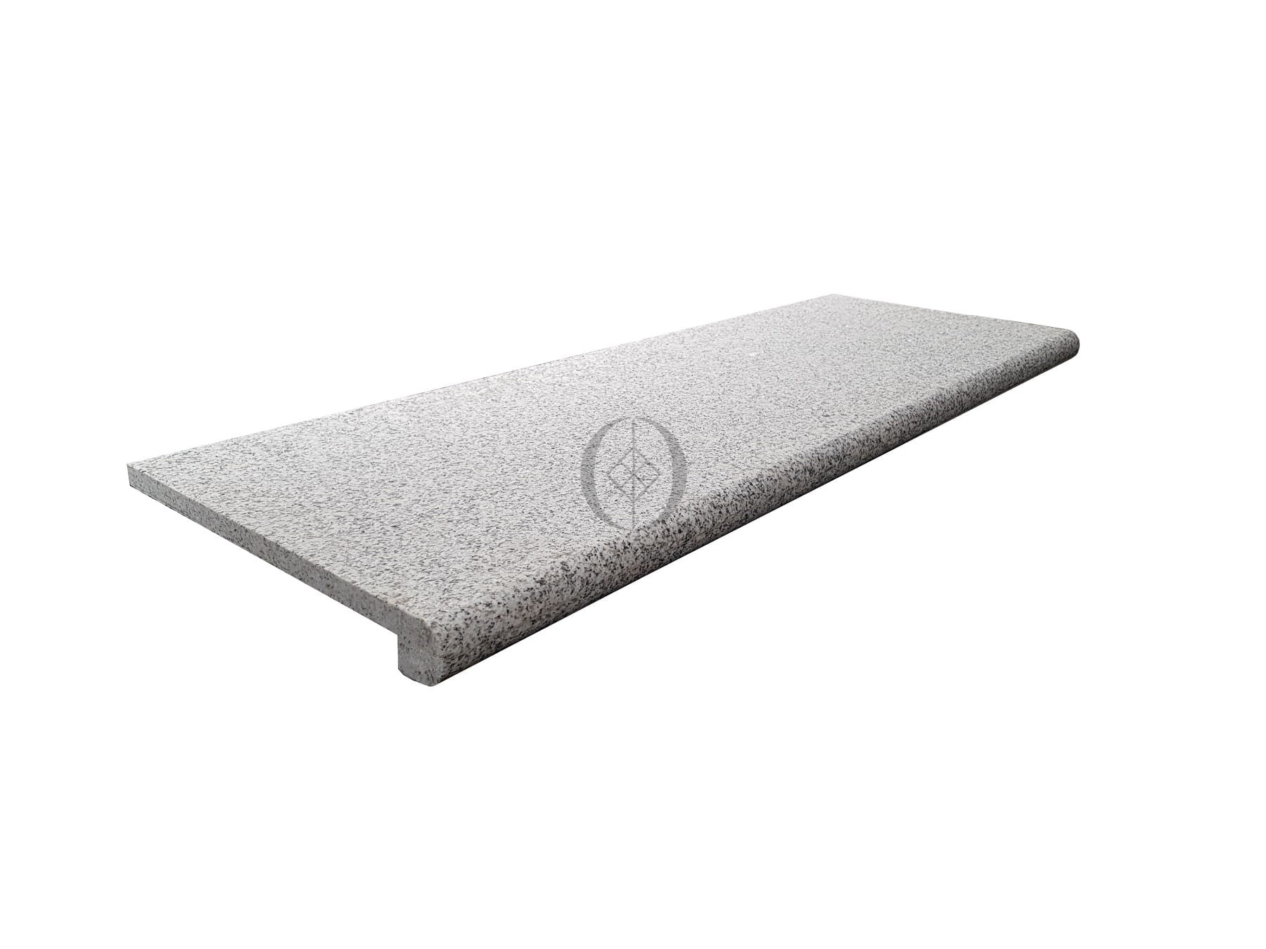 Granitstufe G603 – hellgraue Bullnose-Stufe mit abgerundeter Vorderkante, ideal für den Innen- und Außenbereich.
