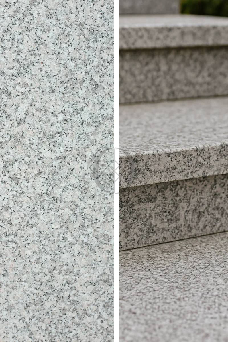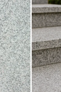 Granit-Treppenstufe Bianco Sardo – langlebige, rutschhemmende Ausführung aus natürlichem Granit in elegantem Grauton.