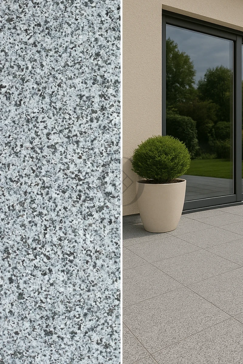Granitfliese G654 Dark Grey New – langlebige und rutschfeste Oberfläche für Terrassen und Fassaden.
