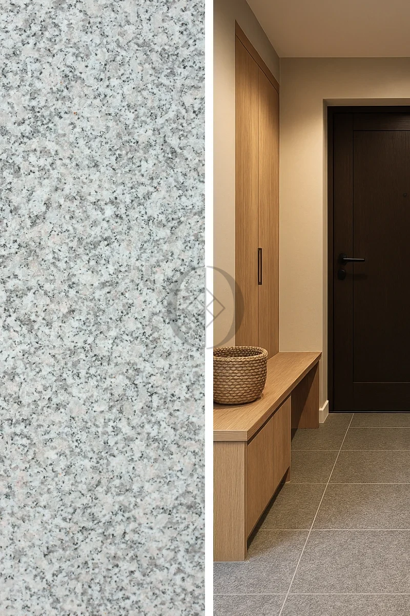 G602 Granit – geflammte 40x40 cm Platte in hellgrauer Farbe, ideal für Terrassen, Einfahrten und Außenwege.