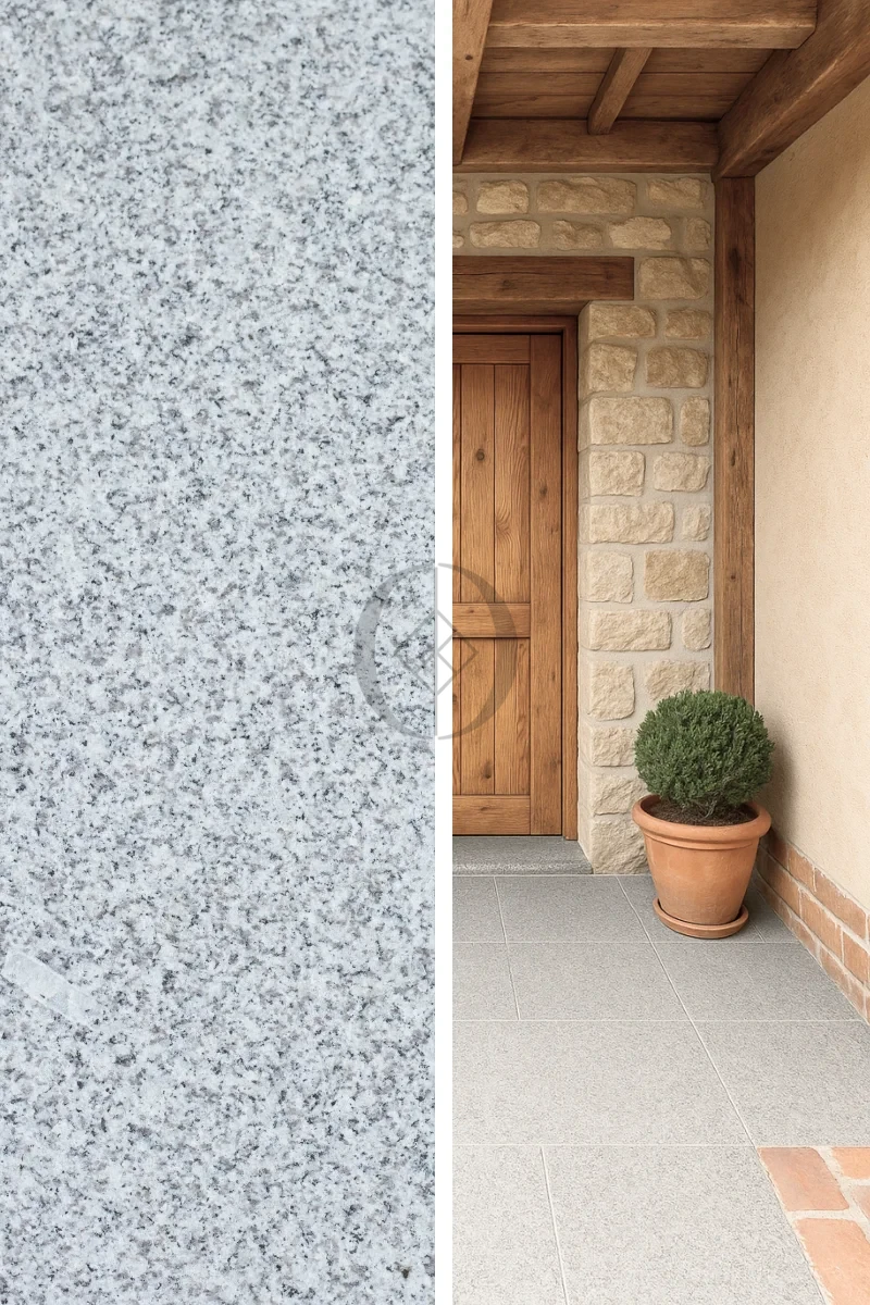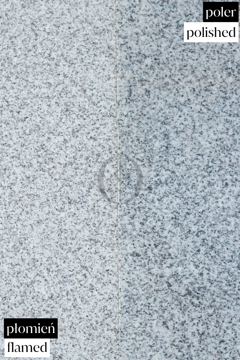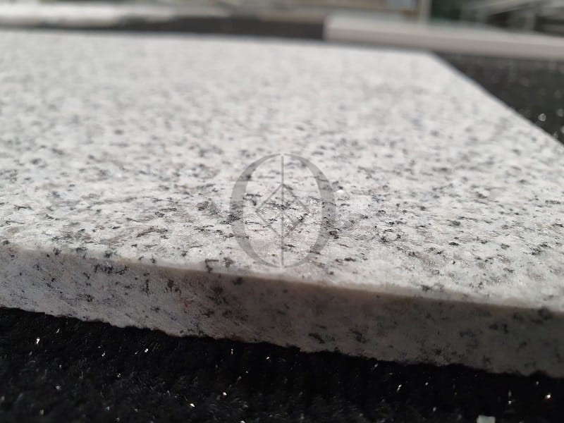 Granitfliese G603 New – grauer Granit mit geflammter, rutschhemmender Oberfläche, ideal für Terrassen und Außentreppen.