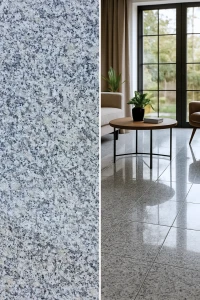 Polierte Granitfliese G602 – elegantes Grau und glänzende Oberfläche, ideal für moderne Innenräume und gewerbliche Bereiche.