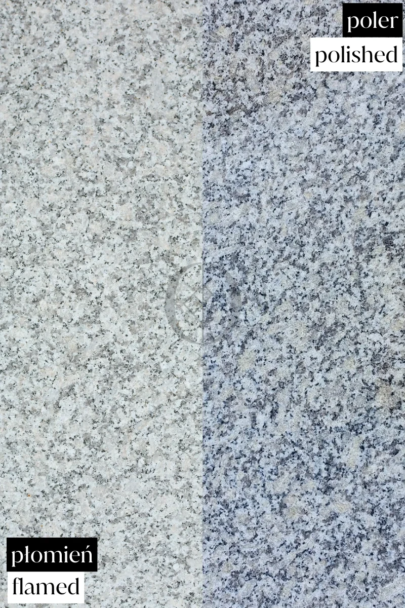 Trittstufe aus geflammtem Granit G602 Bianco Sardo – grauer Granit für Außentreppen, abrieb- und witterungsbeständig.