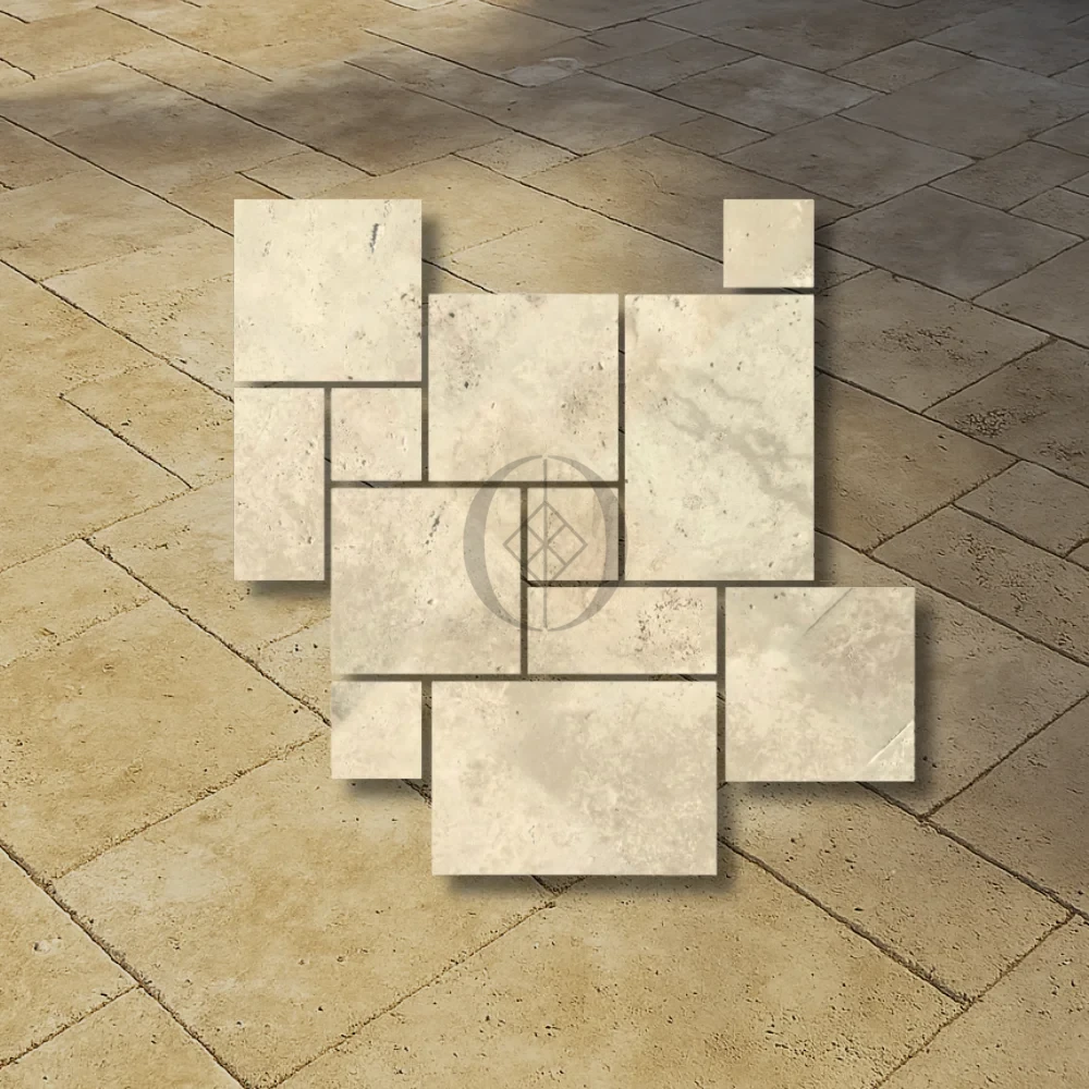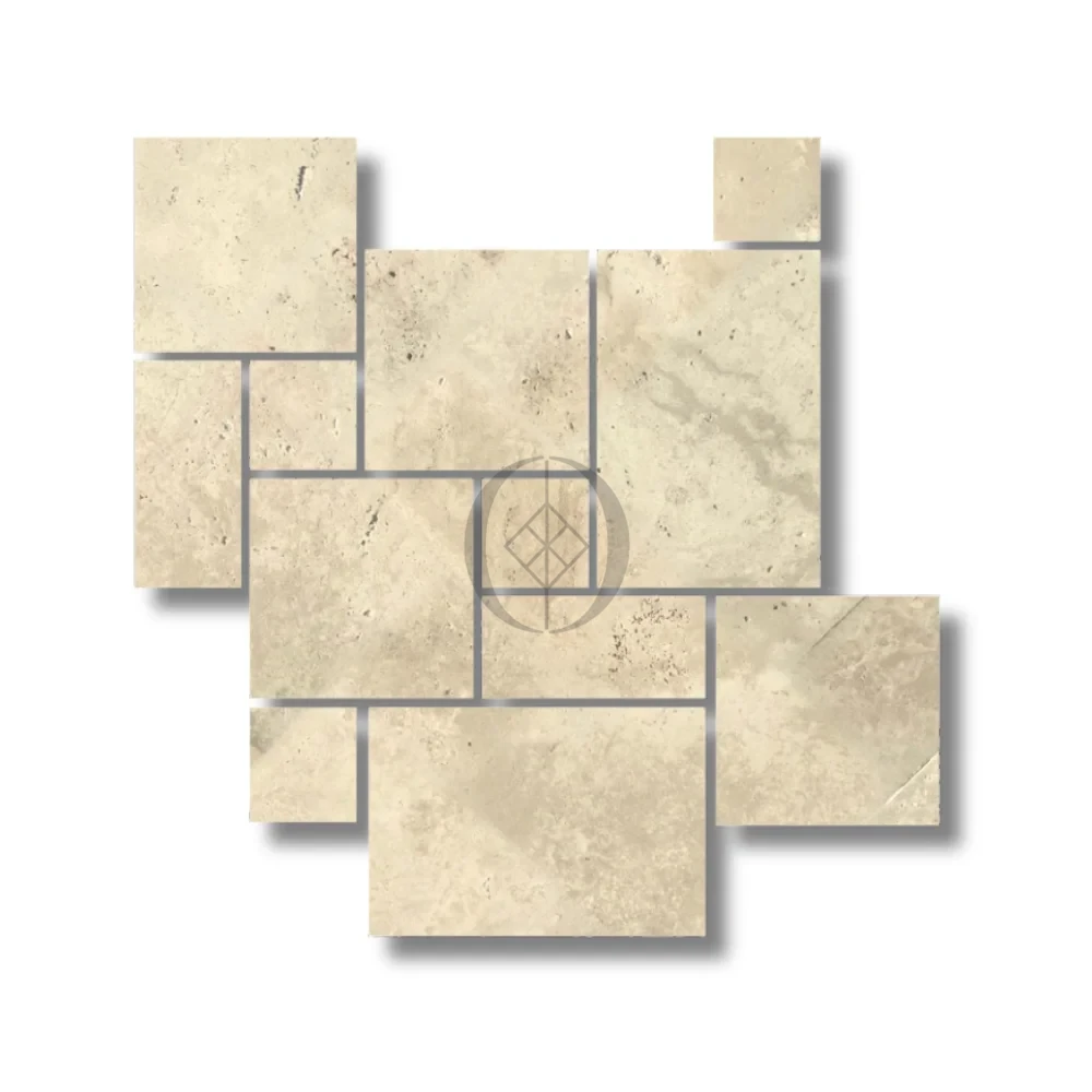 Heller, getrommelter Travertin, 12 mm | Römisches Set
