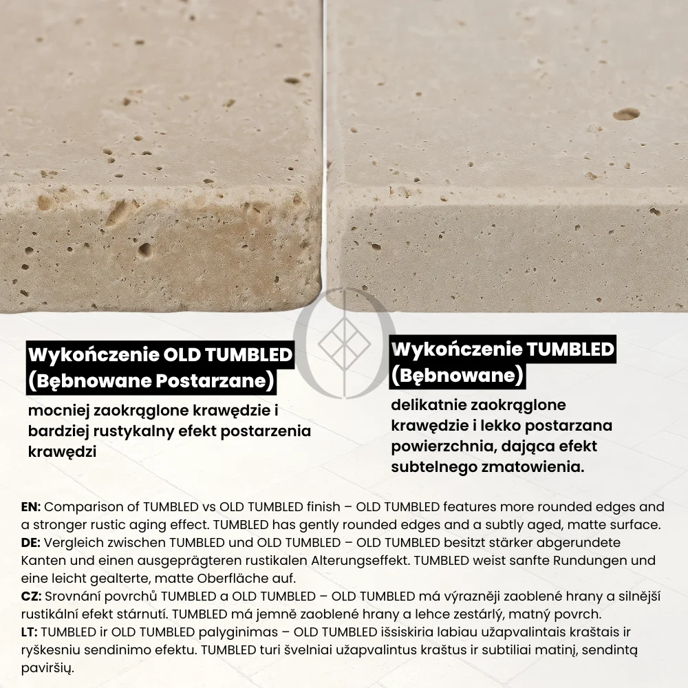 Natürlicher Travertin in warmem Beige mit authentischem OLD TUMBLED-Finish. Die Oberfläche ist dezent gealtert, mit abgerundeten Kanten und unregelmäßiger Struktur. Ideal für Terrassen, Gartenwege und Innenräume im rustikalen oder mediterranen Stil.