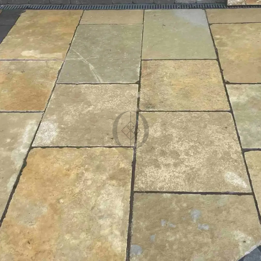 Tandur Yellow Kalksteinplatte 40x60 cm – naturbelassenes Finish in warmer Farbgebung, 3 cm stark.