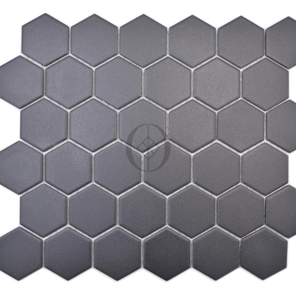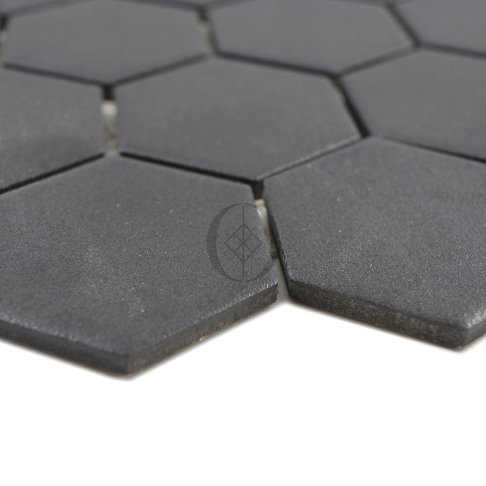 Schwarzes sechseckiges Mosaik 32,5×28,1 cm – matte Oberfläche mit geometrischem Charakter.