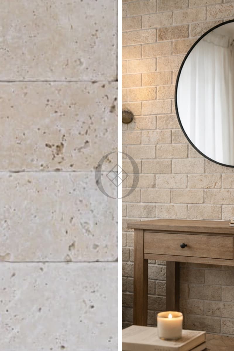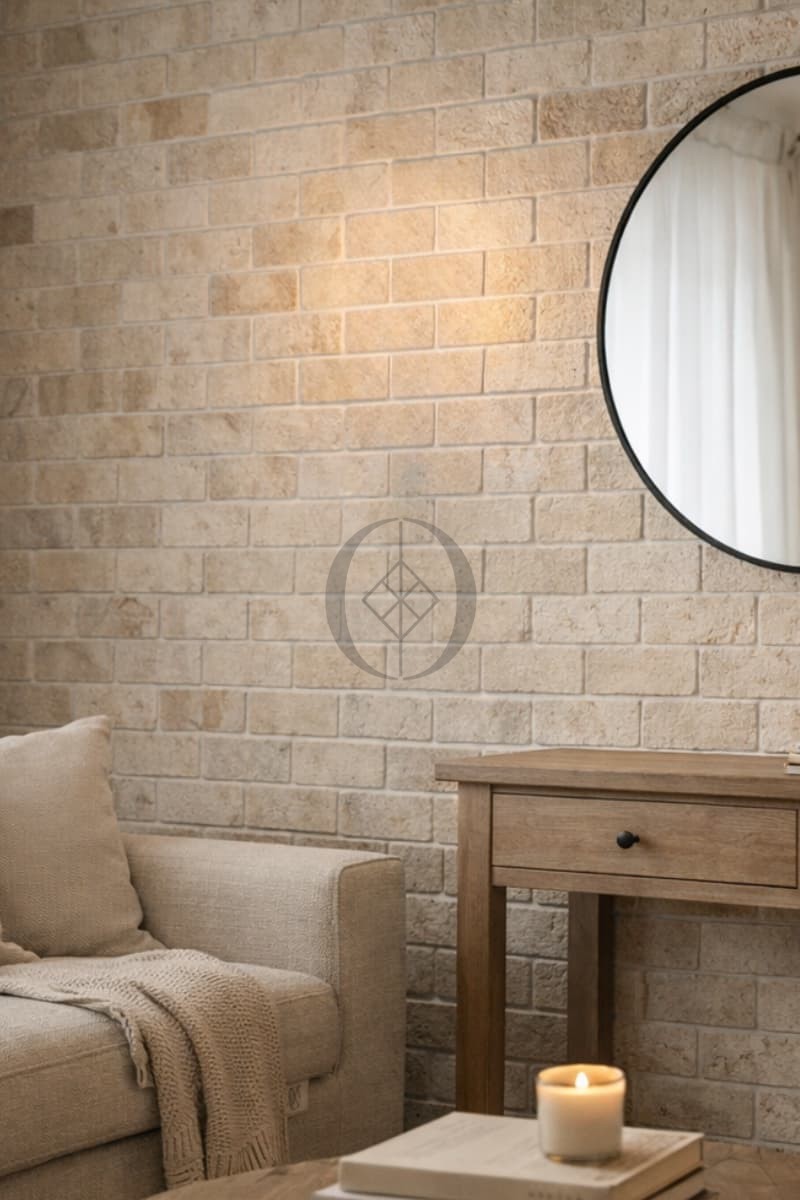 Travertin Light trommelbehandelt 10x30,5x1 cm ist eine natürliche Travertinfliese in hellem, warmem Farbton mit leicht gealterter Oberfläche. Die trommelbehandelte Ausführung verleiht dem Stein dezent abgerundete Kanten und einen rustikalen Charakter, sodass das Material sowohl in modernen als auch in klassischen Innenräumen hervorragend zur Geltung kommt.