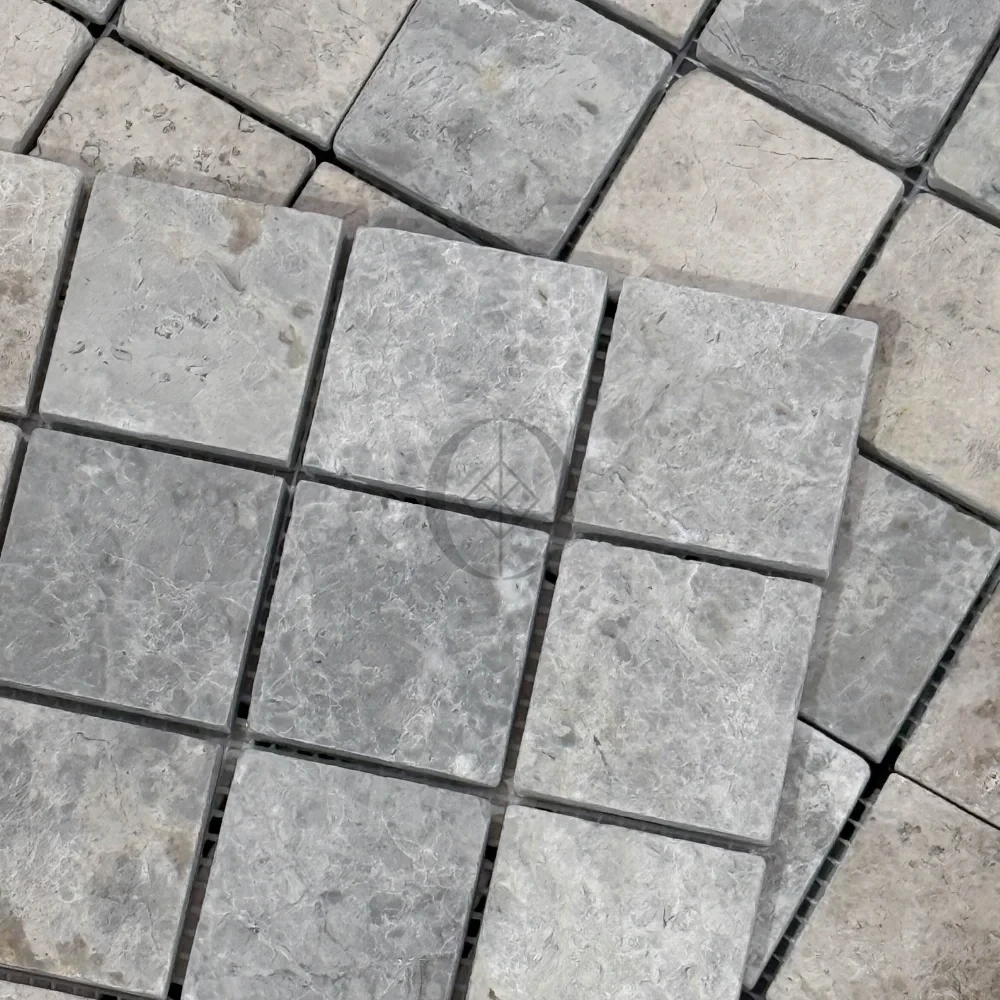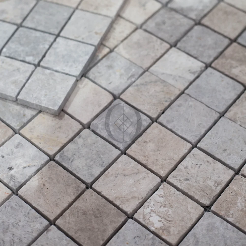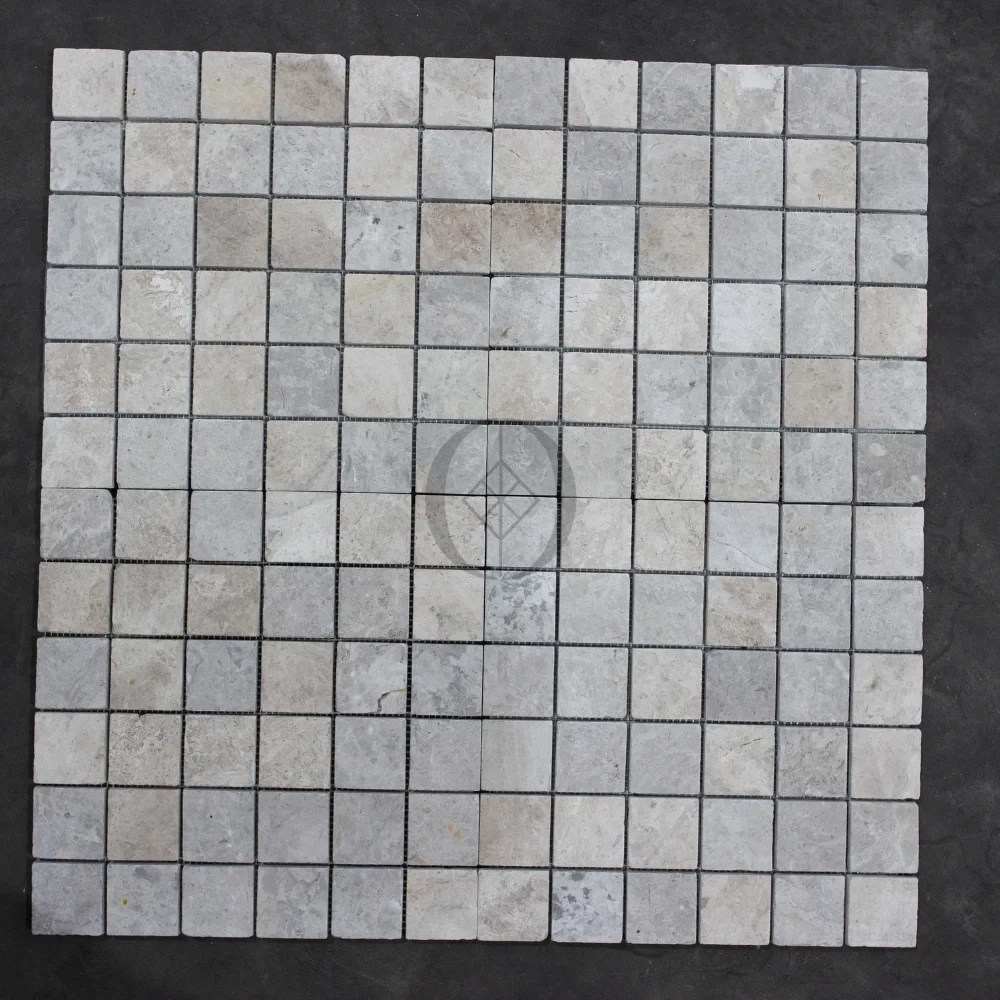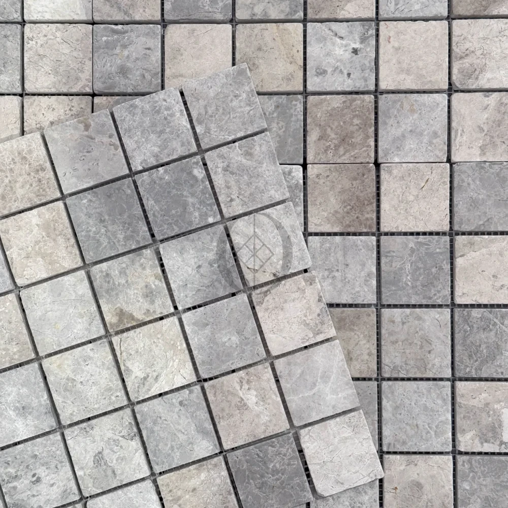 Mosaik aus Marmor Tundra Grey 4,8×4,8×1 cm – grauer Dekorstein für Badezimmer, Küche und Wellnessbereiche.