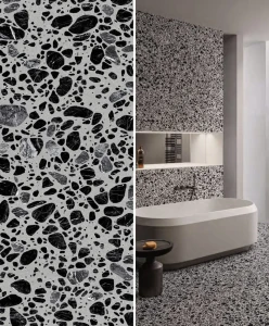 Feinsteinzeugfliese Medley Grey Pop 60x120 matt ist ein modernes, rechteckiges Feinsteinzeug im Terrazzo-Look. Dezentes Grau und die matte Oberfläche verleihen Ihrer Einrichtung Eleganz und zeitlose Ausstrahlung.