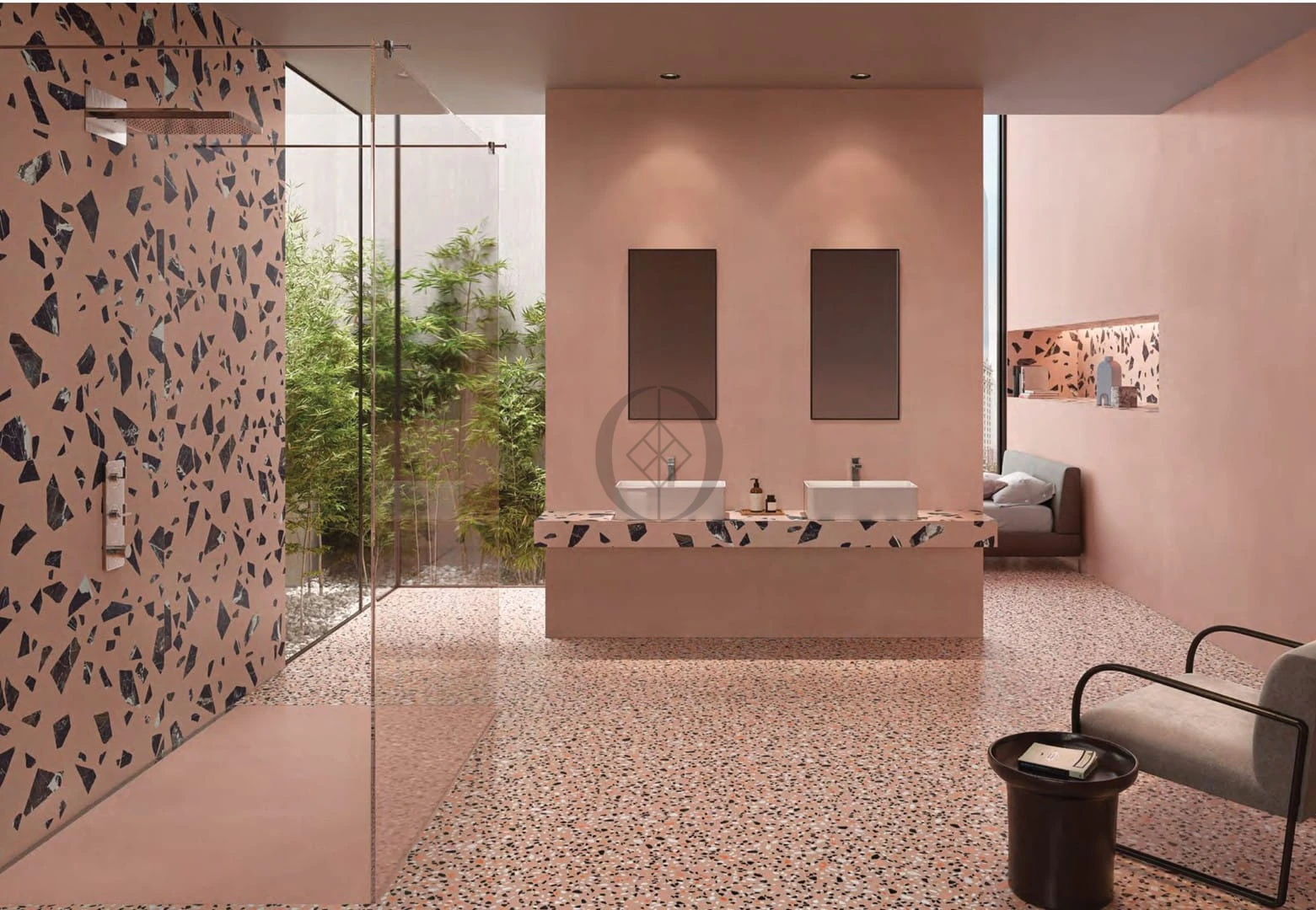 Medley Pink Classic 60x120 Matt-Terrazzo: elegante Großformat-Fliese in zartem Rosa mit charakteristischer Terrazzo-Optik und matter Oberfläche – ideal für Wohn- und Gewerberäume.