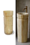 Onyxweißes Waschbecken, freistehend, poliert, 40 x 40 x 90 cm