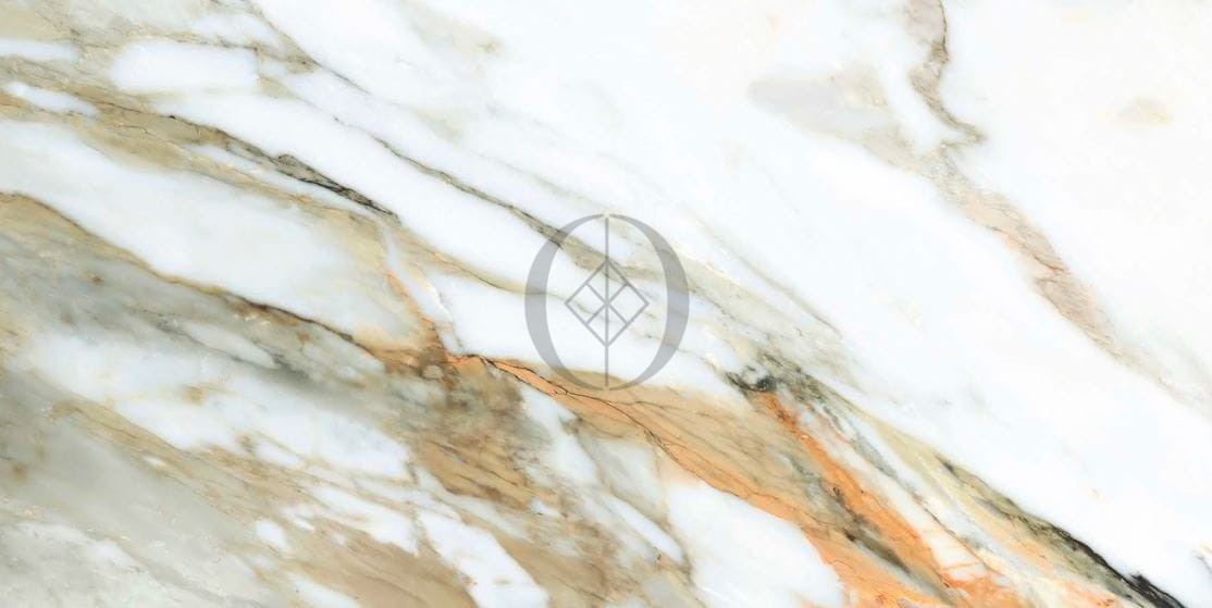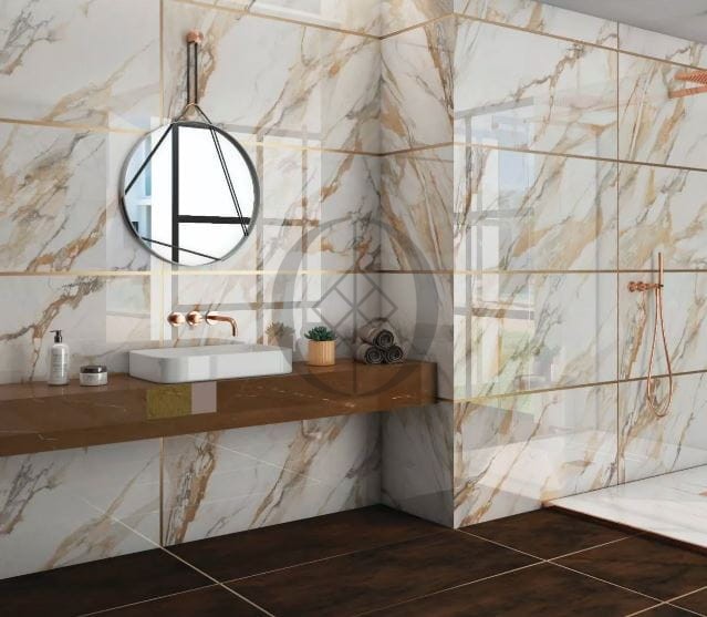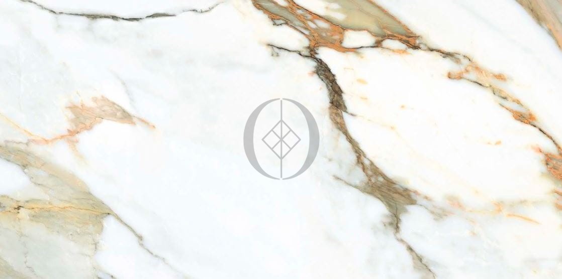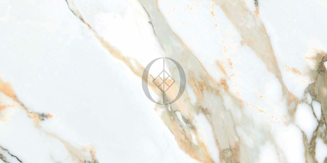 Gres Calacatta Gold 120x60 – luxuriöse Fliese mit weißem Grund und goldenen Adern, ideal für Premium-Interieurs.