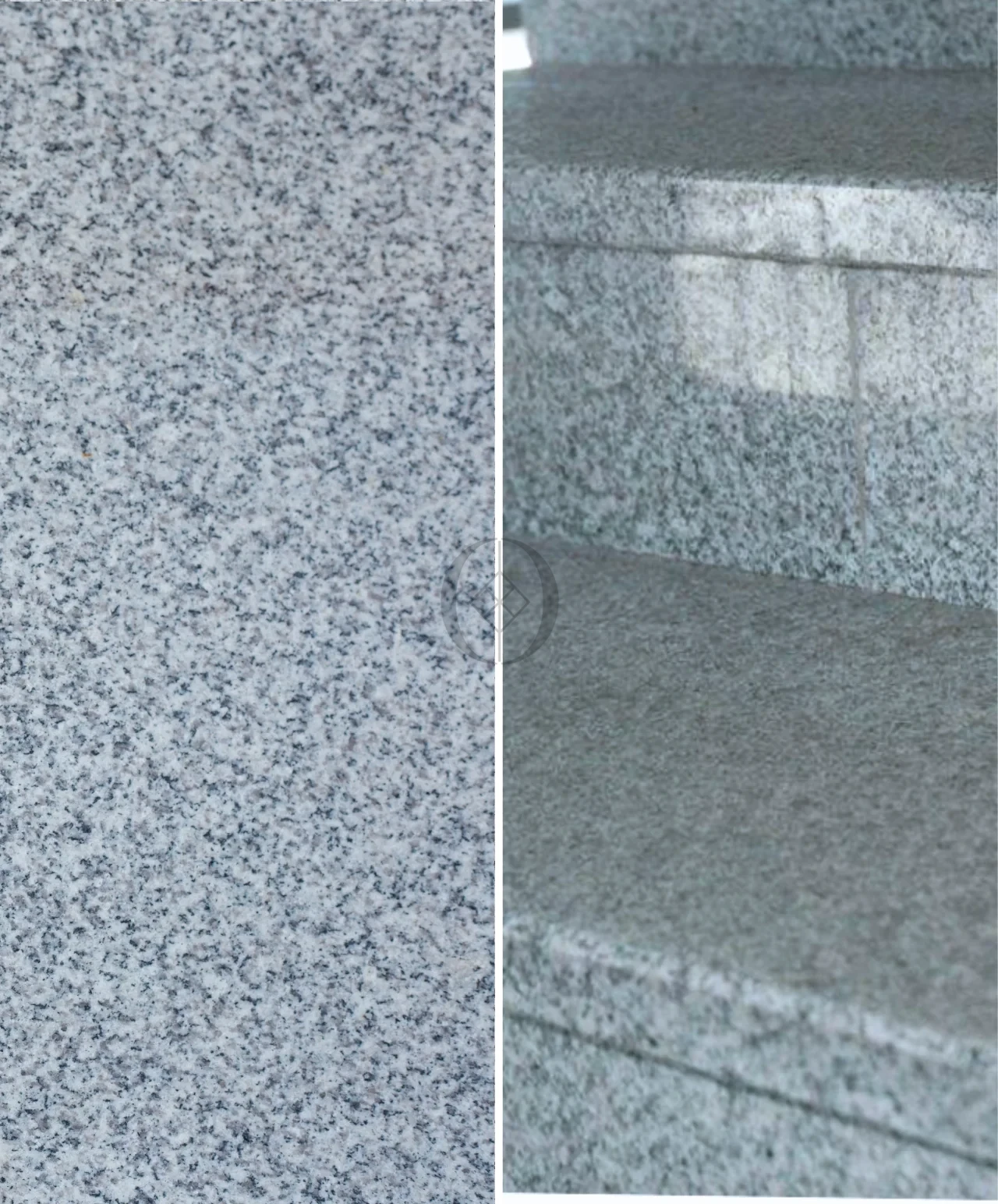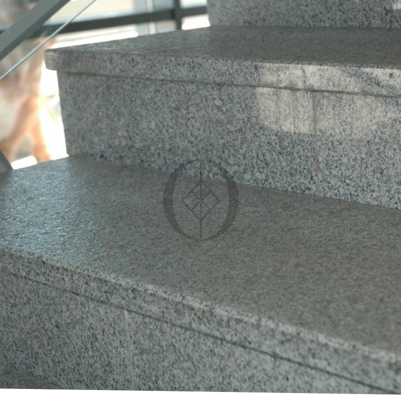 Polierte Granit-Setzstufe G603 – klassisch hellgraue Optik für Innentreppen aus Naturstein.