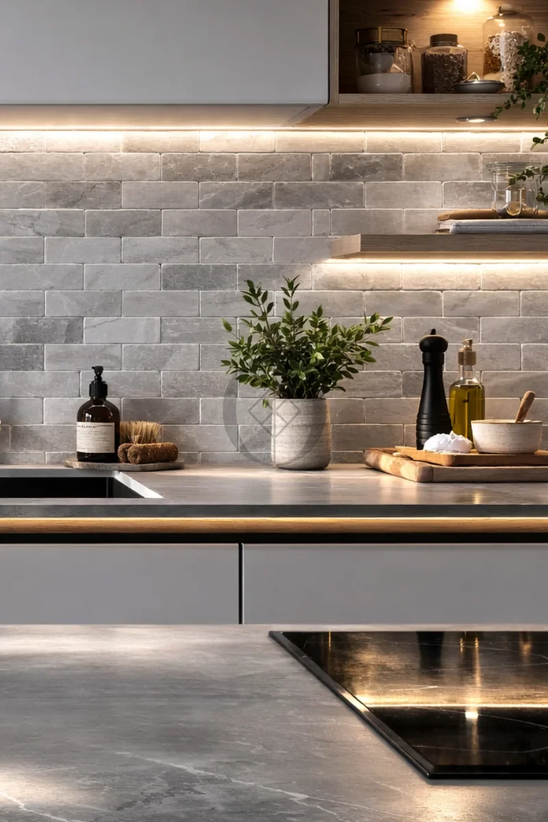 Die natürliche Struktur des Steins verleiht dem Innenraum Tiefe und eine elegante Ausstrahlung ohne übermäßige Dekoration.