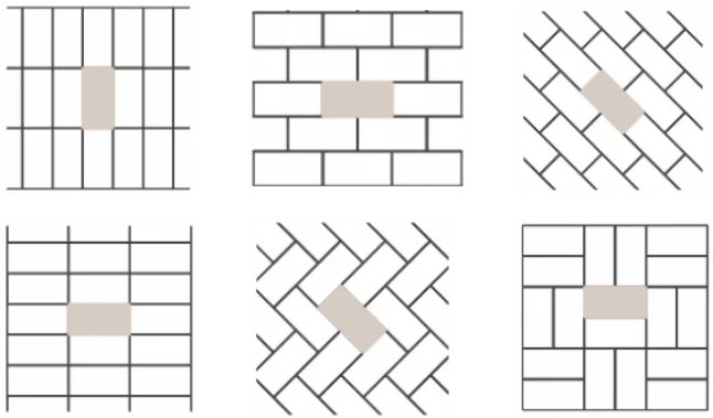 Das Format 7,5x15 cm bietet große gestalterische Freiheit. Die Fliesen können verlegt werden in: