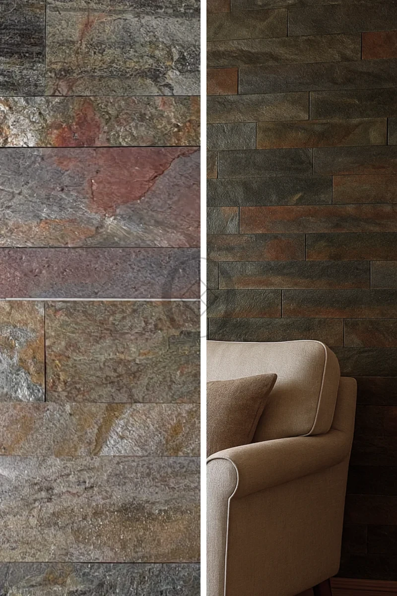 - Dramatischer Kontrast: Ideal zur Kombination mit hellen Elementen (weiße Wände, helles Holz), wodurch die Steintextur optisch hervorgehoben wird.