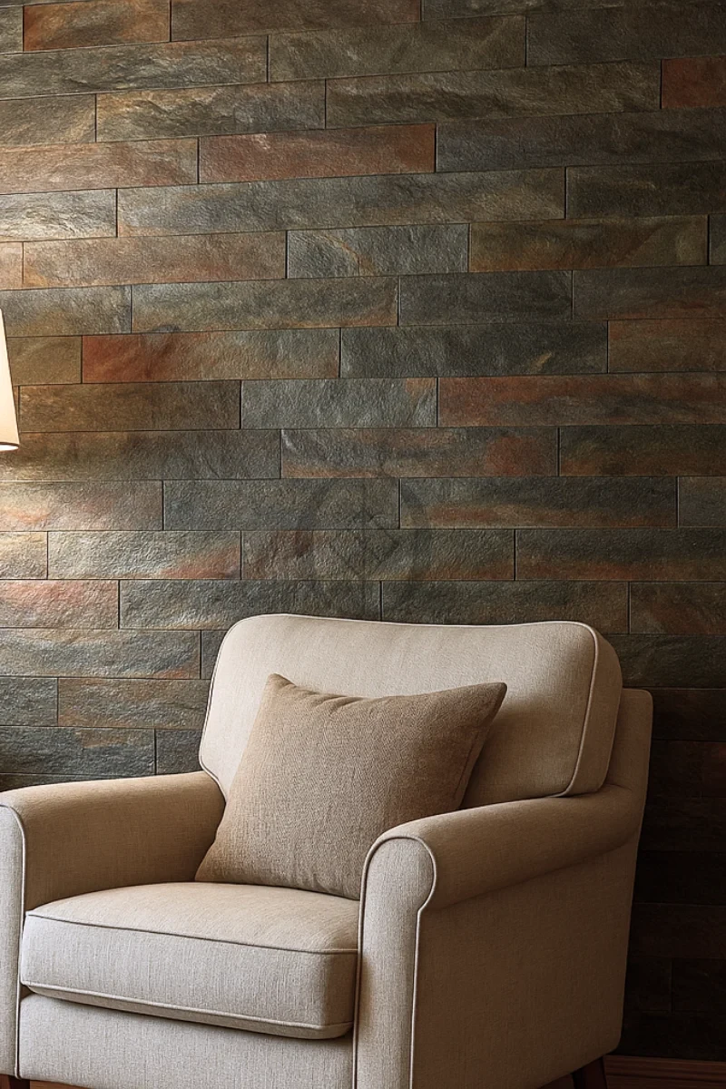 - Loft-Wohnzimmer: Setzen Sie einen Akzent an einer Wand (z. B. hinter dem Fernseher), kombiniert mit rohem Holz und Metallakzenten.