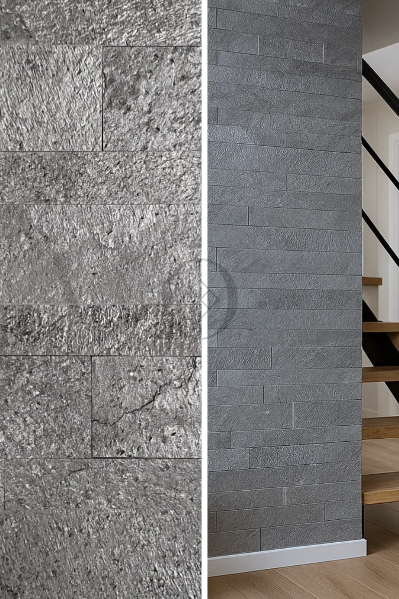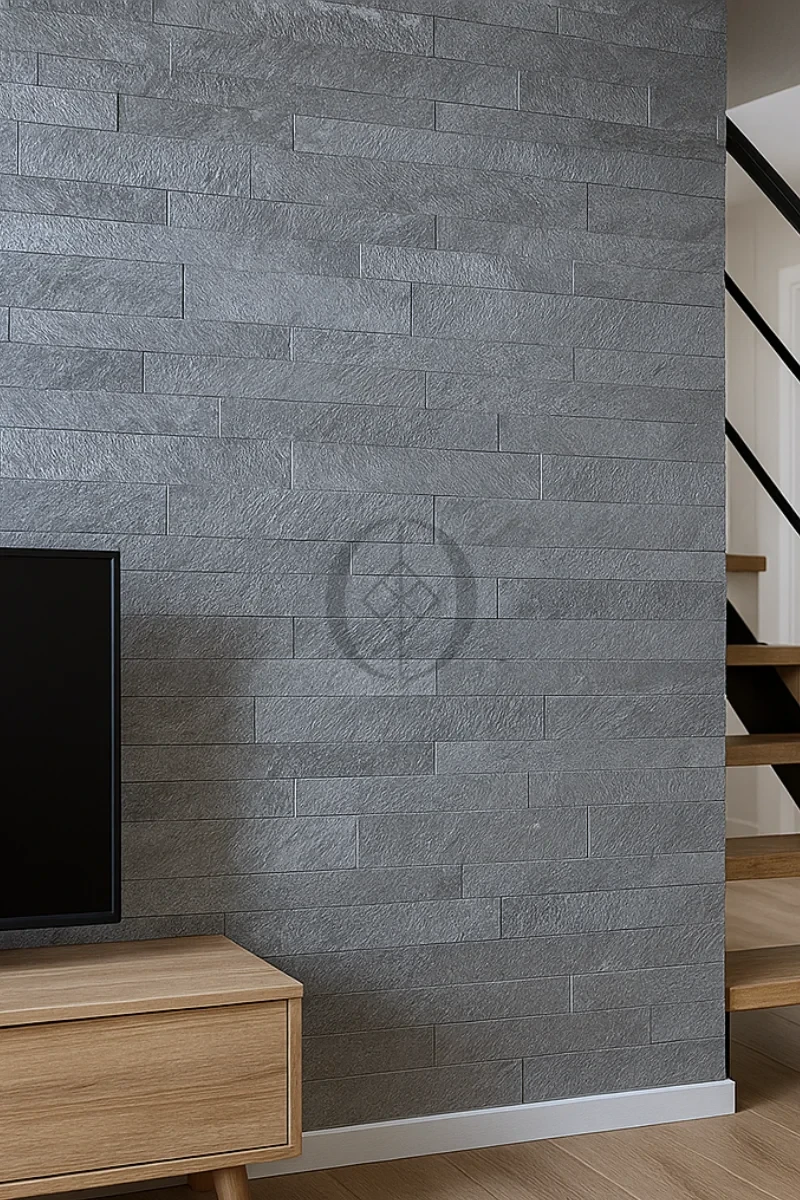 3D-Panel Silver Grey – selbstklebender Steinfurnier in silbrig-grauem Ton für dekorative Innenwände.