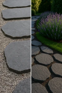 Stein für Wege | Gartenplatten G690 Bazalt Black geflammt 40x60x3 cm – langlebige und rutschhemmende Oberfläche für Wege, Terrassen und Einfahrten.