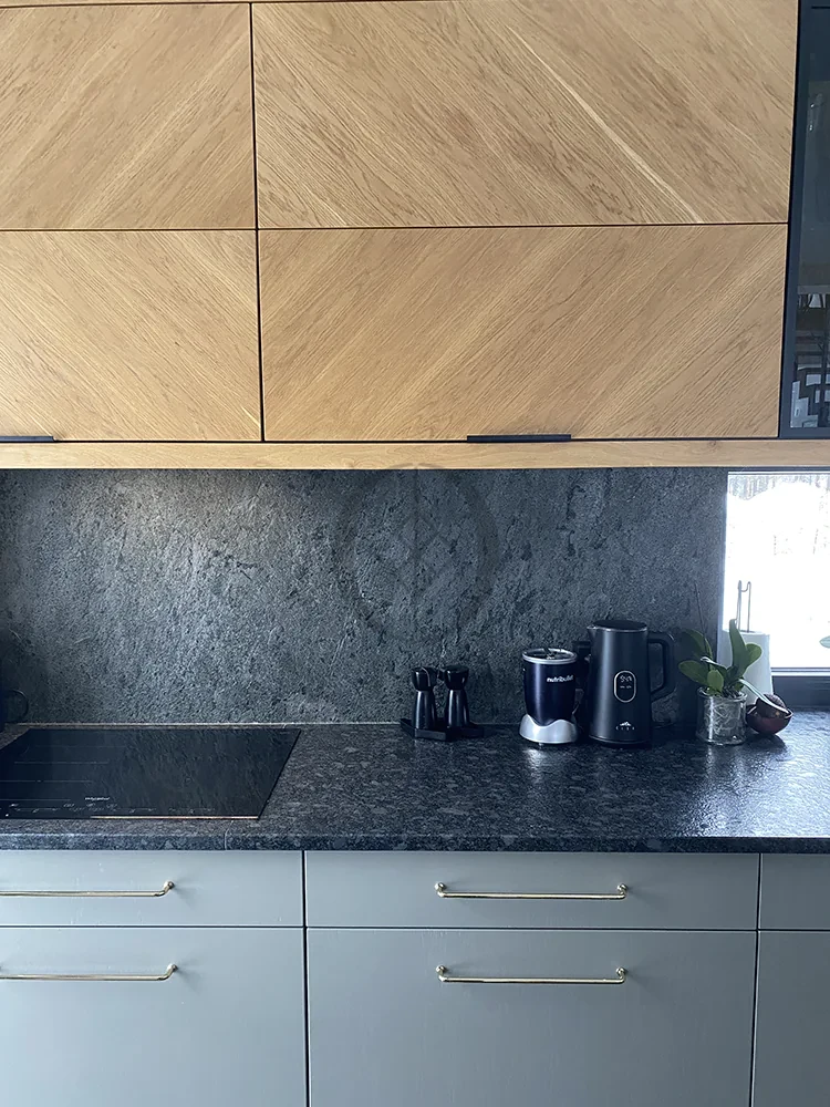 Steinfurnier Silver Grey 122×305 cm – eleganter Schiefer in kühlem Grauton im ultralangen XXL-Format.