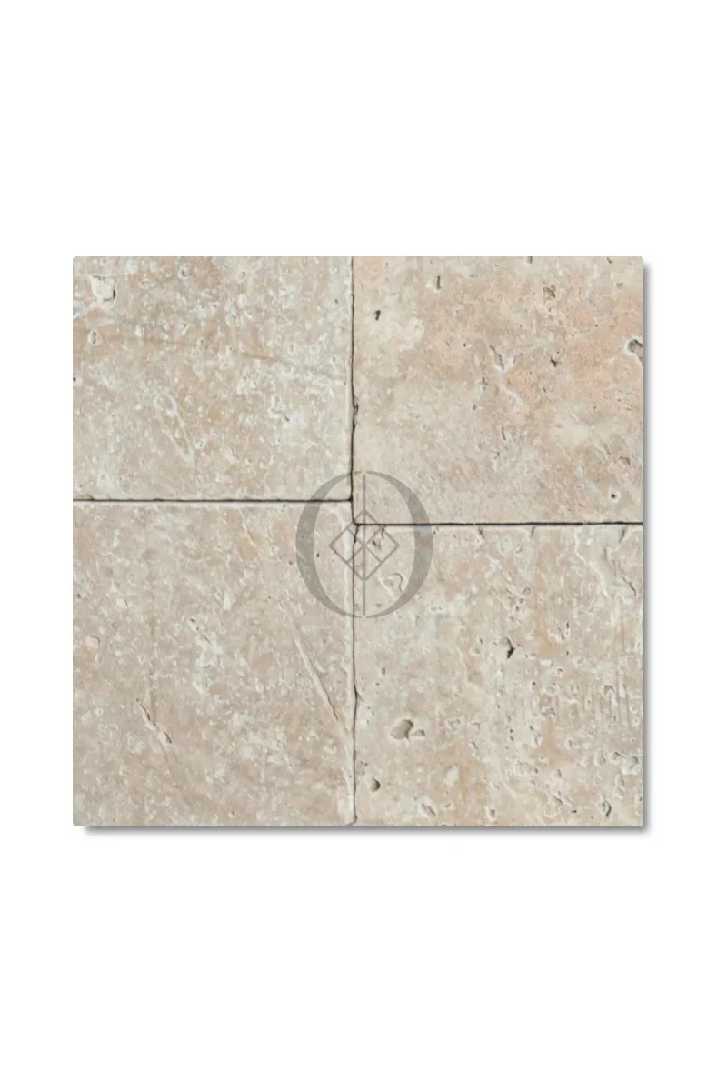 Getrommelter Travertin Blend Mix 15,25x15,25x3 cm – warme, rustikale Natursteinoptik für Innen- und Außenbereiche.