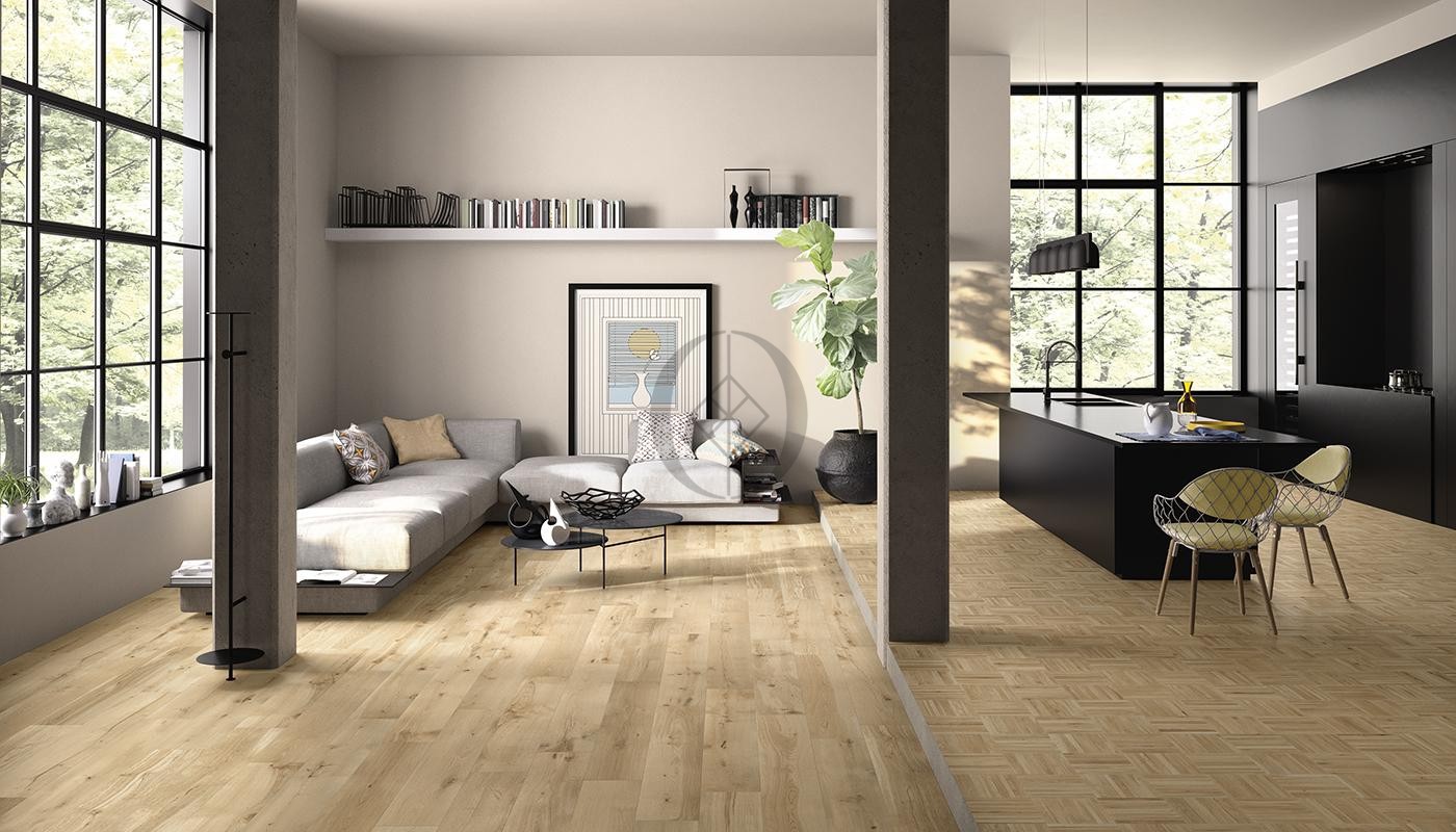 Twenty Industrial 19,7x119,5 drewno von Domelia: elegante Holzoptik-Fliese im Format 19,7x119,5 cm mit dezenter Maserung und neutraler Farbgebung — pflegeleicht und verschleißfest, ideal für Wohn- und gewerbliche Räume.