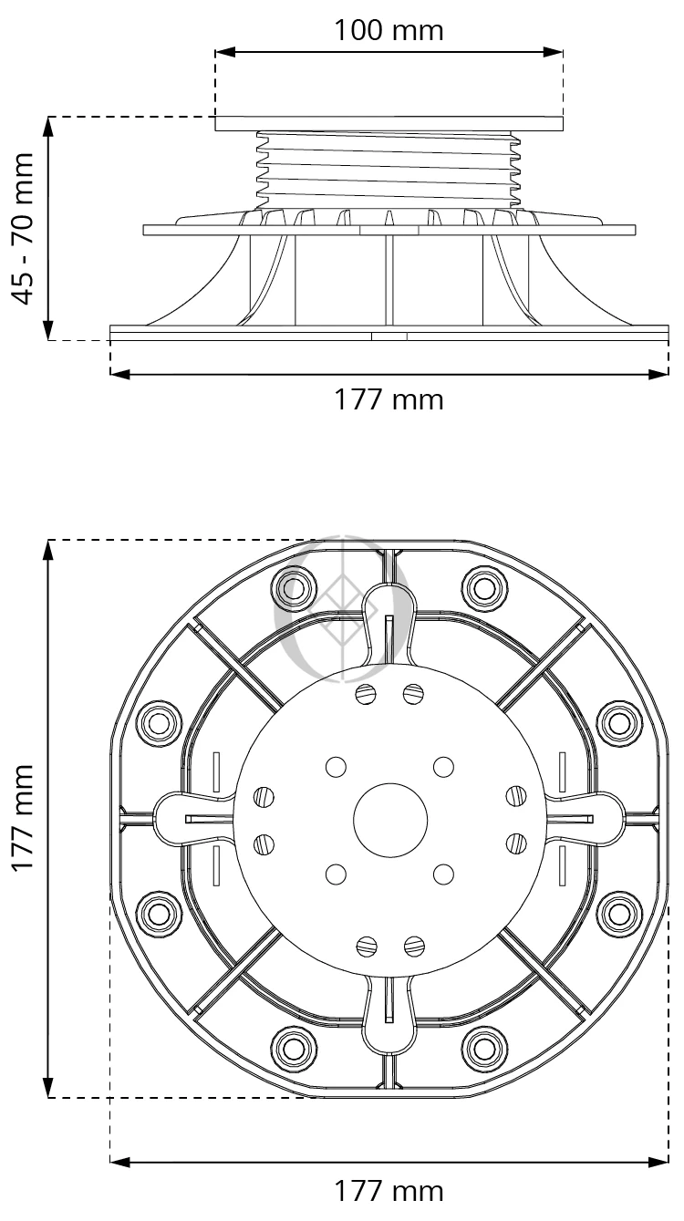 Verstellbarer Terrassenstützfuß DDG 45–70 mm – langlebige und flexible Lösung zur Montage von Terrassenplatten.