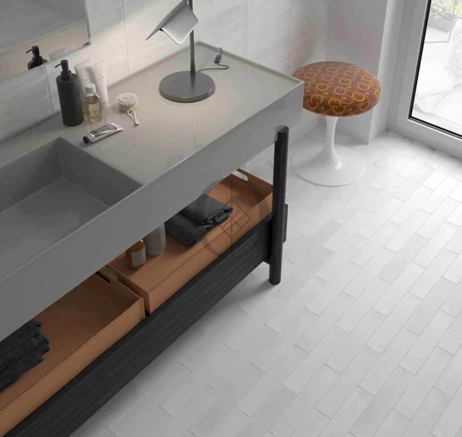 Wadi Snow 6x30 – matte Ziegelfliese im Format 6×30 cm in zeitlosem Weiß, vielseitig einsetzbar als Wand- und Bodenfliese für klassische und moderne Räume.