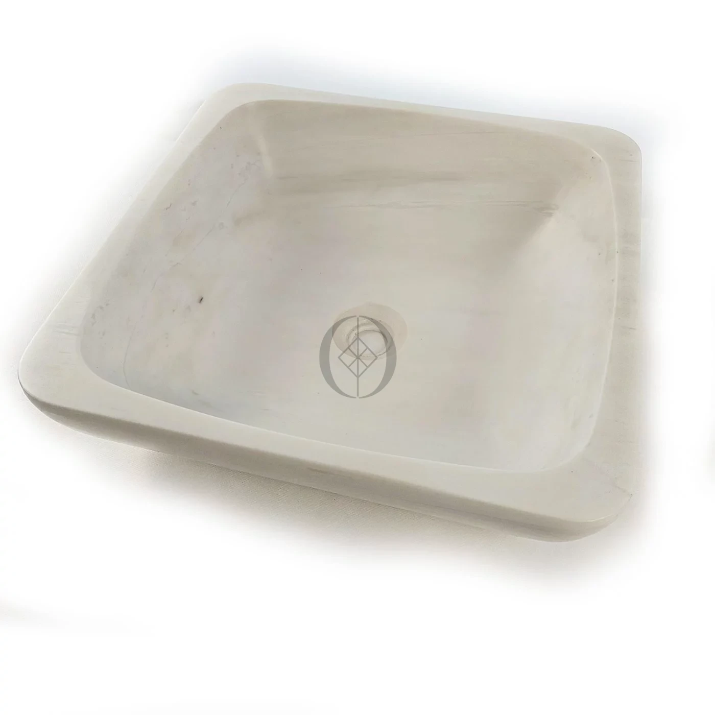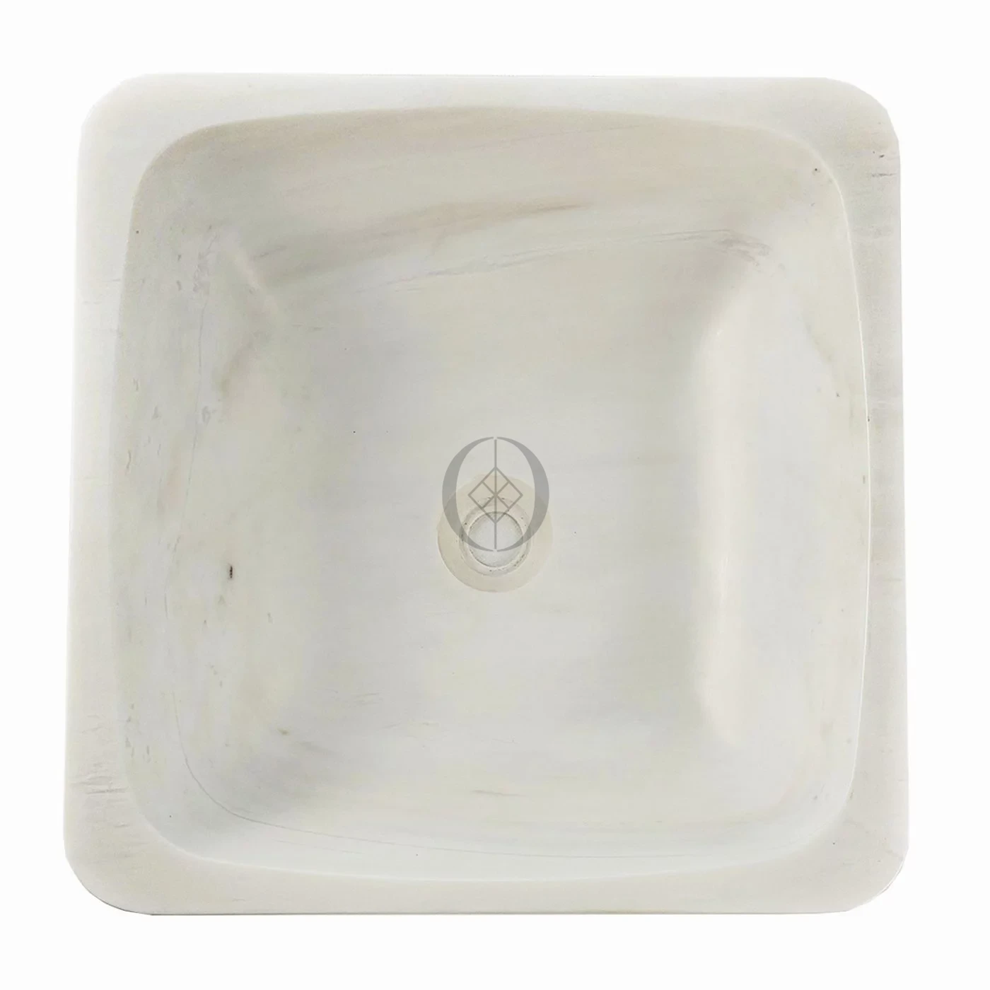 Domelia Marmorwaschbecken Glacier White, poliert, 40,6×40,6×12,7 cm – elegantes Aufsatzbecken aus weißem Naturmarmor, pflegeleicht und zeitlos.