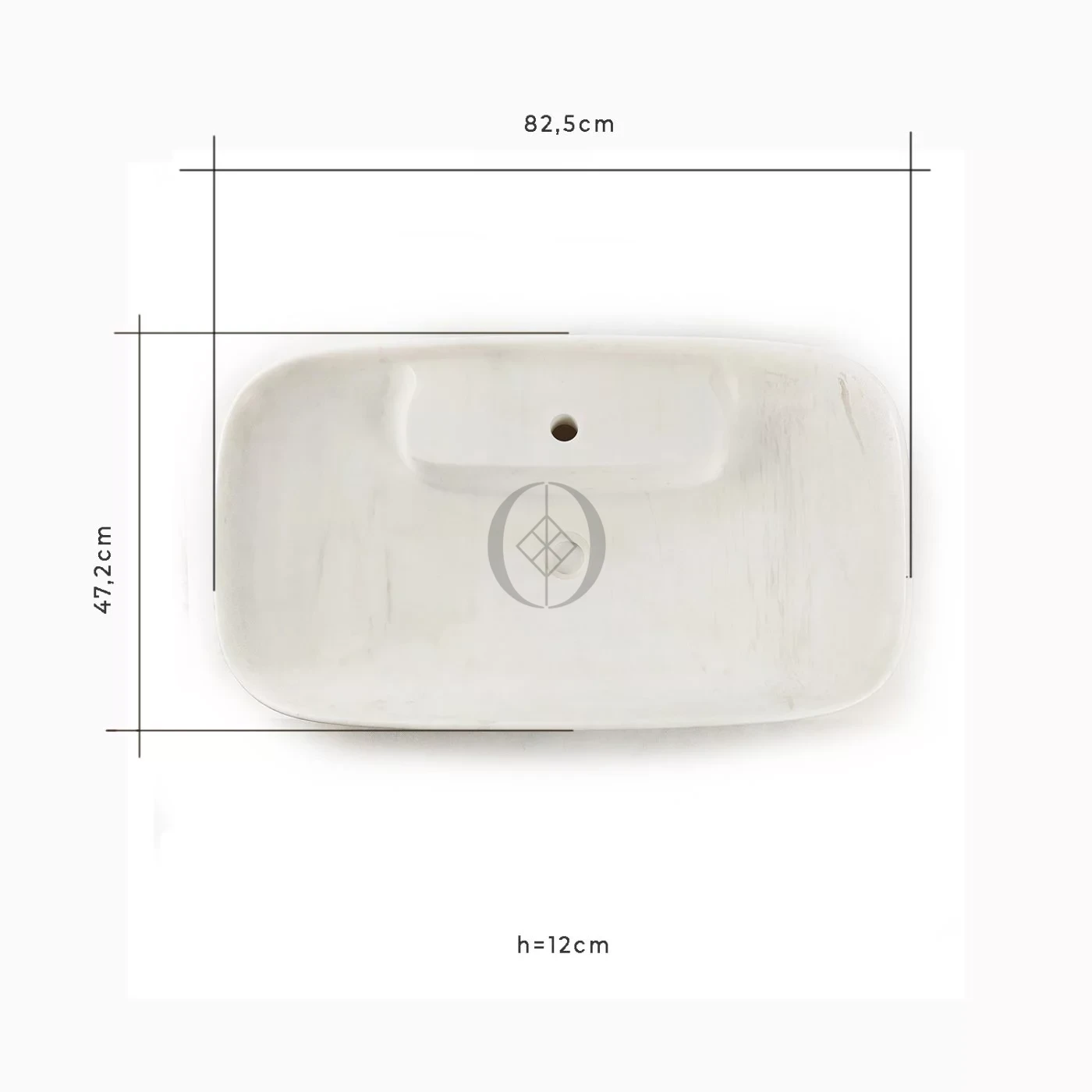 Elegantes Aufsatzwaschbecken aus weißem Marmor Bianco, poliert, 82,5×47,2×12 cm – luxuriöses, langlebiges Naturstein-Design für anspruchsvolle Bäder.