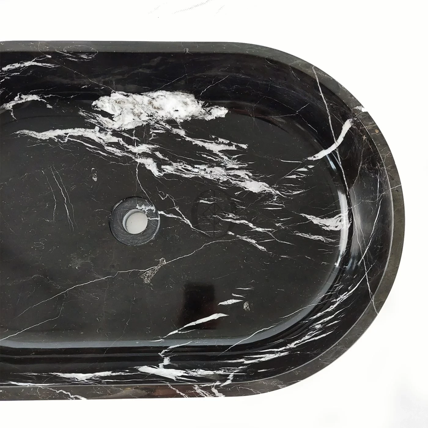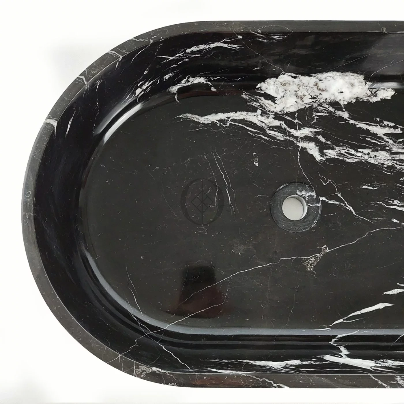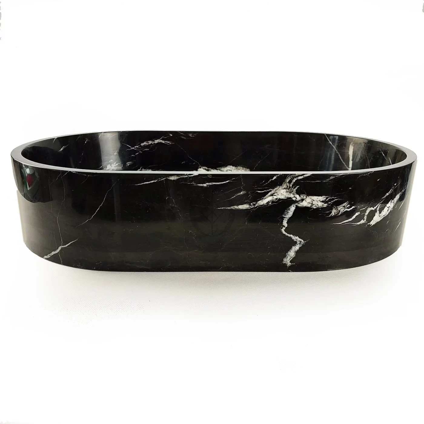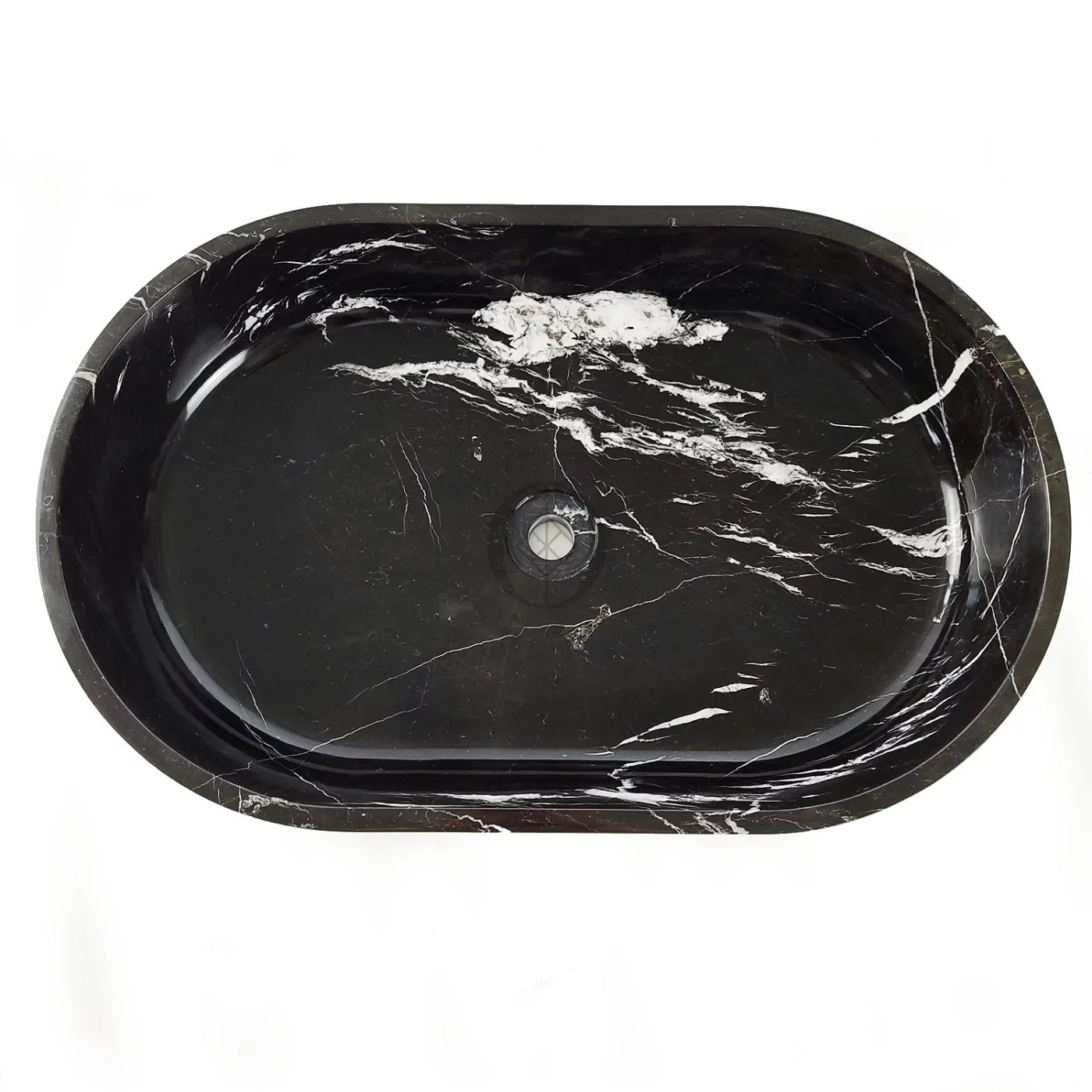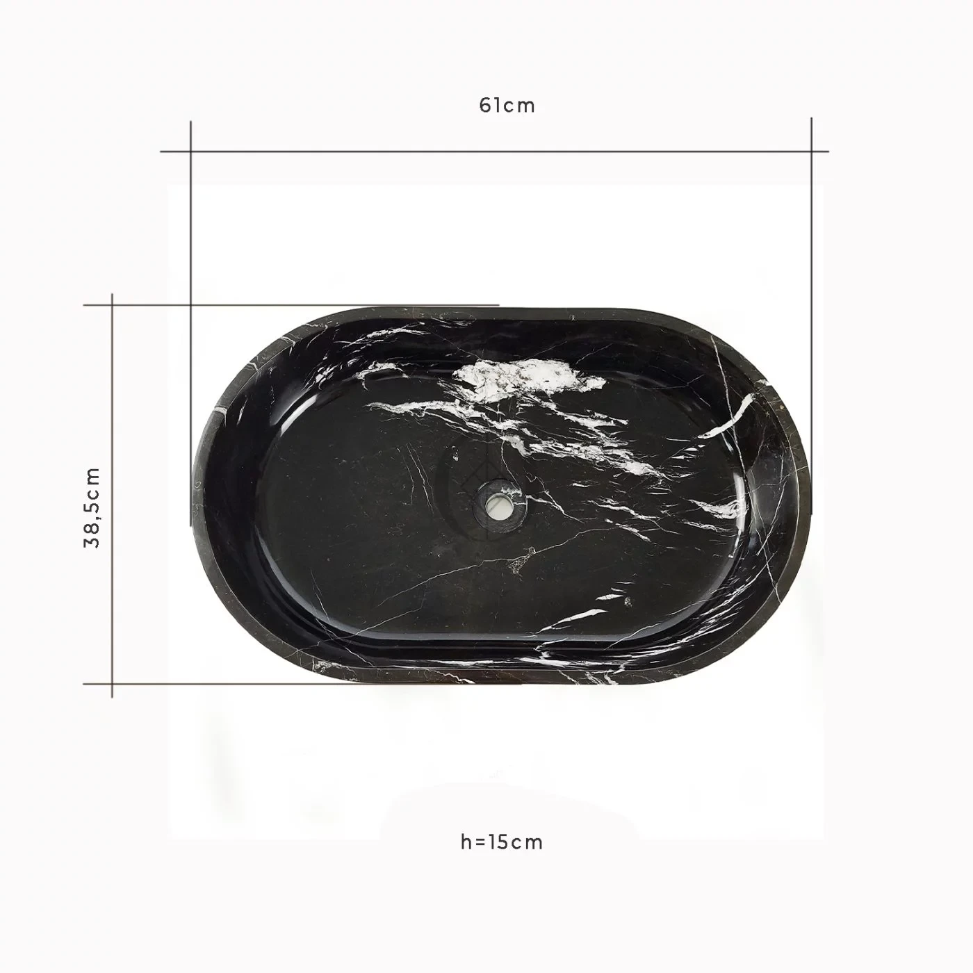 Aufsatzwaschbecken aus schwarzem Marmor Black Silk, poliert, 61×38×12,7 cm – elegante und langlebige Lösung für moderne Bäder.